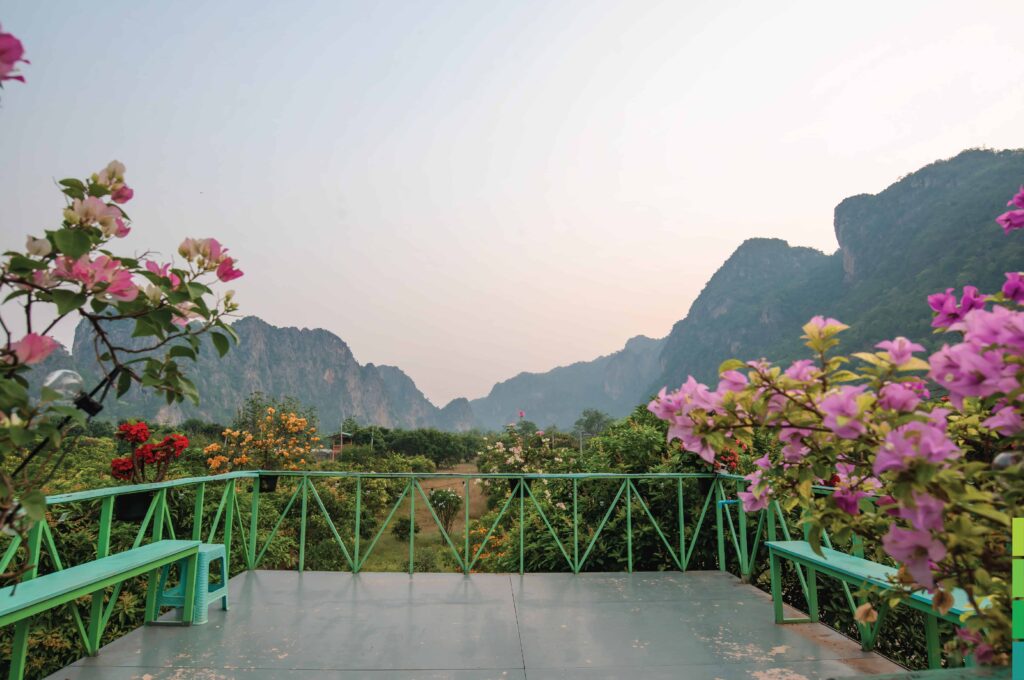 จุดชมวิวยอดฮิตของเมืองริมน้ำสะแกกรัง ด้วยวิวภูเขาหินปูนและต้นไม้ใหญ่น้อยที่อุดมสมบูรณ์ บรรยากาศเย็นสบาย ให้ความรู้สึกเหมือนอยู่ต่างประเทศ ทำให้มีนักท่องเที่ยวมากมายแวะเวียนมาเยี่ยมชมความงดงาม จนต้องเปิดเป็นลานกางเต็นท์ให้ได้ดื่มด่ำกับธรรมชาติอย่างเต็มที่ มีพื้นที่ให้ตั้งแคมป์ 2 โซน คือ โซนพื้นหญ้าและโซนบนเนิน มีบริการไฟฟ้า ห้องน้ำ สัญญาณ Wi-Fi สามารถประกอบอาหารเองได้ (ไม่อนุญาตให้ใช้เตาไฟฟ้า) และสัตว์เลี้ยงสามารถเข้าพักได้ นอกจากนี้ยังมีร้านอาหารและร้านกาแฟให้บริการภายในพื้นที่ของลานกางเต็นท์ด้วย