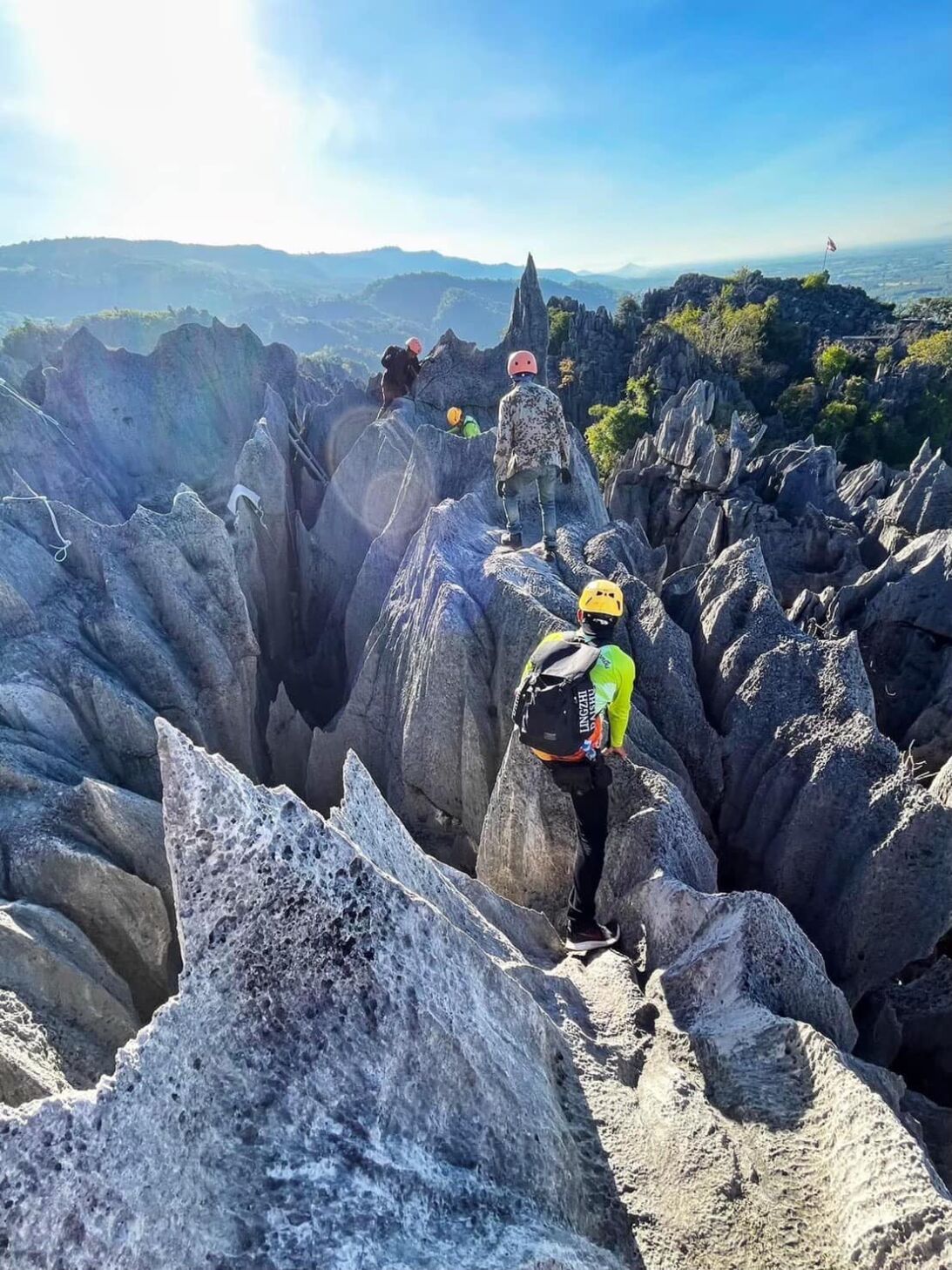 นักท่องเที่ยวควรต้องสวมถุงมือยางไว้คอยจับหินปูนตลอดเส้นทาง เมื่อขึ้นไปถึงยอดเขานายพรานจะนำอาหารพื้นบ้านไปให้นักท่องเที่ยวขึ้นไปกินบนยอดเขา ได้บรรยากาศอาหารหลักร้อย วิวหลักล้านกันเลยทีเดียว ถือว่าเป็น Unseen ของจังหวัดพิษณุโลกอีกแห่งหนึ่งที่กำลังได้รับความนิยมเป็นอย่างมากเลยครับ