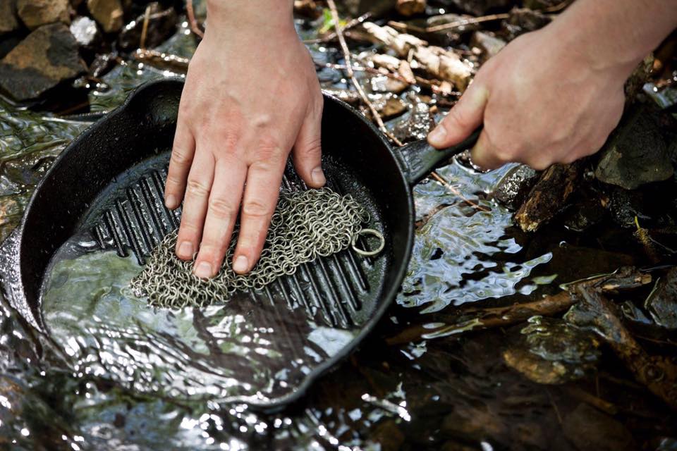 ขัดเศษอาหารที่ติดอยู่ : กรณีเศษอาหารฝังลึกให้ขัดล้างด้วยโซ่โลหะหรือแผ่นขูด Petromax หรือแปรงขนอ่อนล้างให้สะอาด หรือใช้วิธีต้มน้ำให้ร้อนแล้วใช้พายไม้ถูออก
