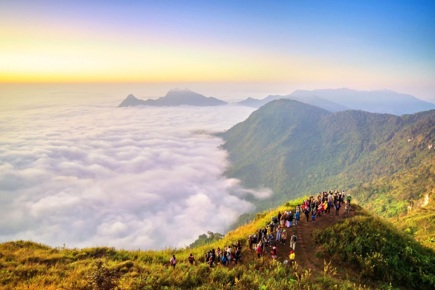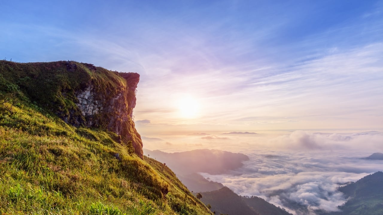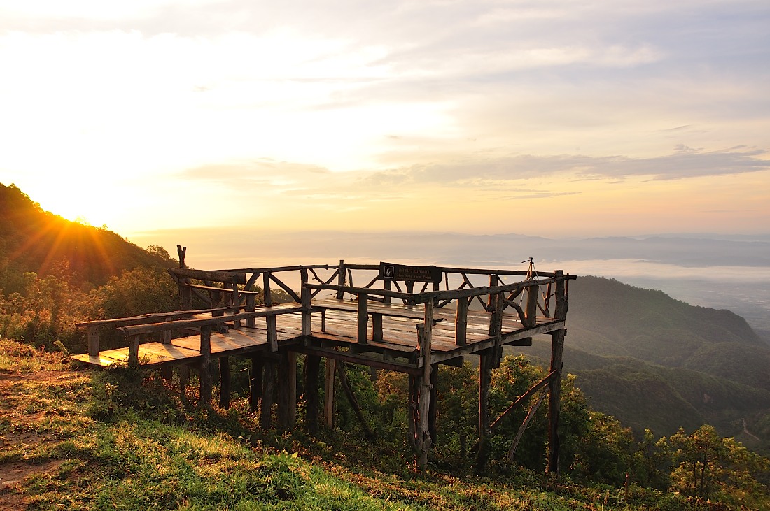 วนอุทยานภูชี้ฟ้า สถานที่น่าเที่ยวใน จ.เชียงราย ใครที่มาเที่ยวที่จังหวัดนี้แล้วเป็นอันต้องไปภูชีฟ้าเพราะที่นี้ถือว่าเป็นจุดที่ชมทะเลหมอกได้ดีอีกจุดนึงเลยก็ว่าได้ คอนเฟิร์มเลยว่าถ้าใครได้ไปนอนกางเต็นท์ที่นี้แล้วนั้นรับรองว่าจะต้องประทับใจอย่างแน่นอน ภูชี้ฟ้านั้นมีความสูงประมาณ 1,628 เมตร และไฮไลท์สำหรับคนที่ไปพักที่นั้นก็คือจุดชมวิวและพระอาทิตย์ตกในยามเย็นนั้นเอง แต่สำหรับพิกัดที่ให้นักท่องเที่ยวกางเต้นท์นั้น จะอยู่บริเวรเชิงภู ถ้าอยากจะขึ้นไปจะต้องขยันเดินเพราะมีระยะทางประมาณ 1.5 กิโลเมตรเลย ถ้าใครขาลุยอยู่แล้วก็ถือว่าจิ๊บๆ แต่ใครที่ไม่เคยเดินป่าเขา บอกเลยว่าก็ไม่เหนื่อยแรงเพื่อแลกกับความสายงามที่เราจะเจอ