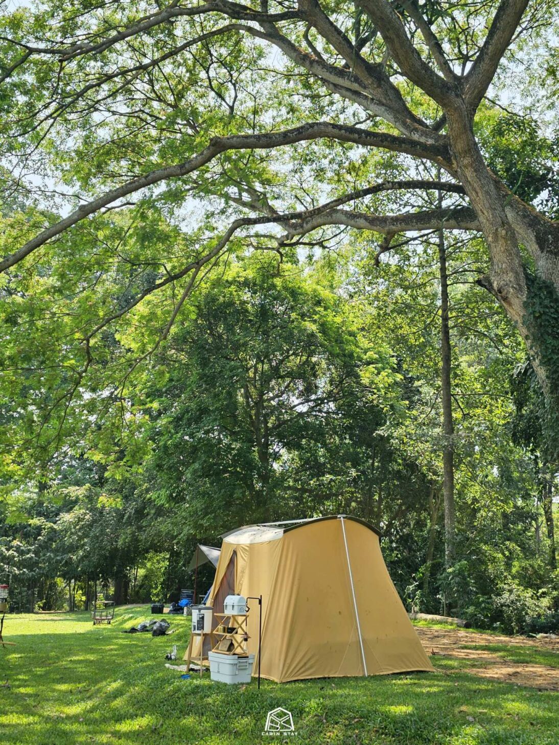Cherry’s hub stone camp ลานกางเต็นท์ กาญจนบุรี มีร่มไม้เยอะลมเย็นตลอดทั้งวัน ลานยังแบ่งเป็นลานหินฟีลญี่ปุ่น กับลานหญ้า นอกจากนี้ลานยังติดกับริมแม่น้ำแคว มีบริการเรือพายให้พายเล่นด้วยนะ