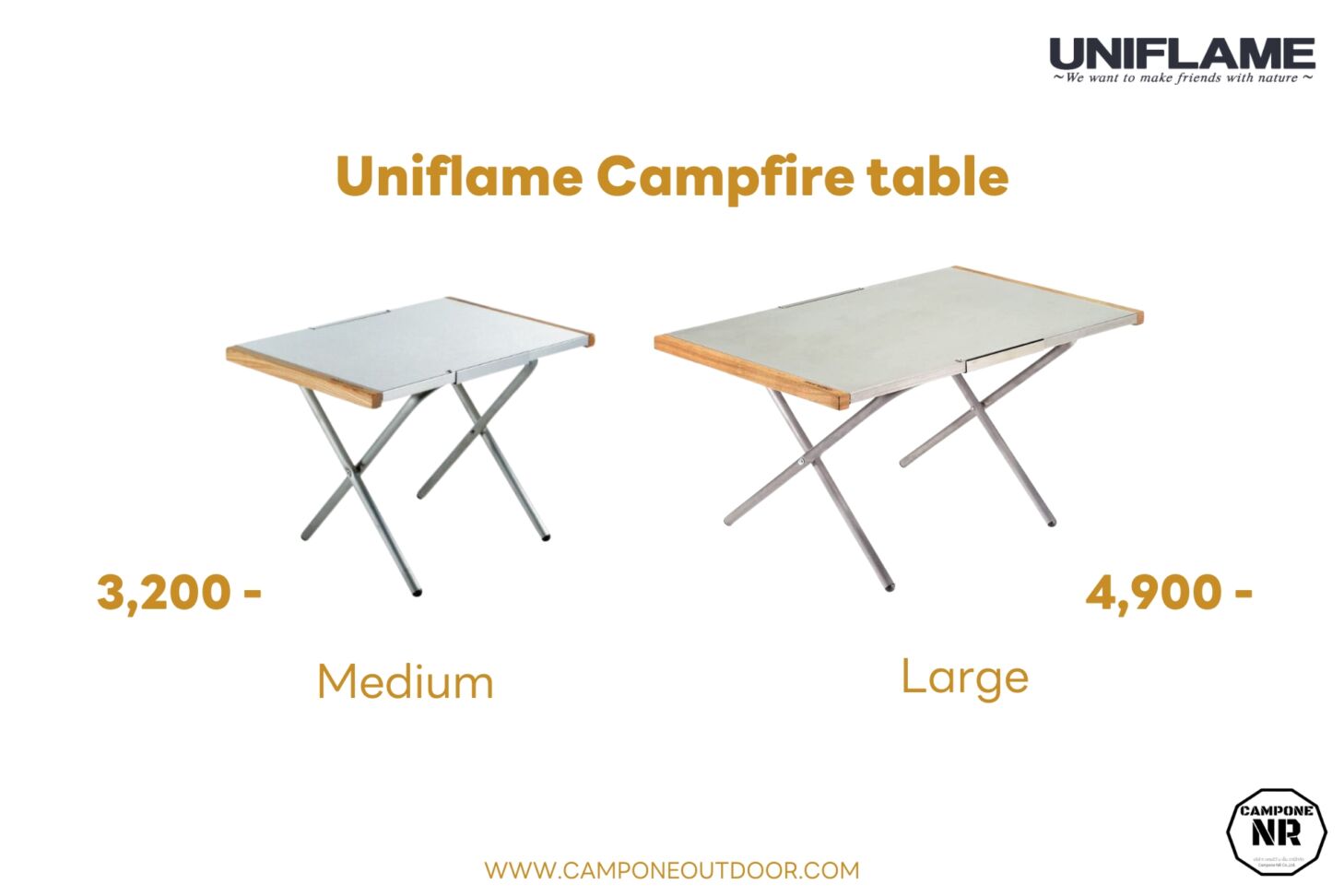 โต๊ะขายดีตลอดกาล Campfire หรือ Bonfire table ยอดนิยม แบรนด์ Uniflame จากประเทศ ญี่ปุ่น ผิวโต๊ะทนไฟ ทนร้อน ทนรอยขูดขีด ทำความสะอาดง่าย ด้วยวัสดุสแตนเลส ขอบโต๊ะหุ้มด้วยไม้สัมผัสถึงความสวยงาม มี 2 ขนาดให้เลือก size m ขนาด : 55 x 35 x 37 ซม. size l ขนาด 70 x 45 x 37 (สูง)ซม.