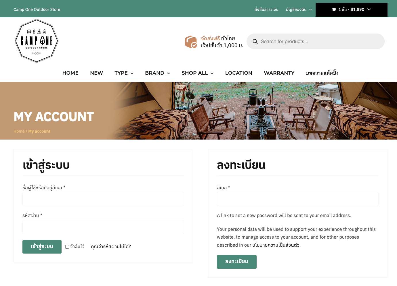 1. เข้าเว็บไซต์ www.camponeoutdoor.com จากคอมพิวเตอร์หรือมือถือ หรือ สแกน QR CODE