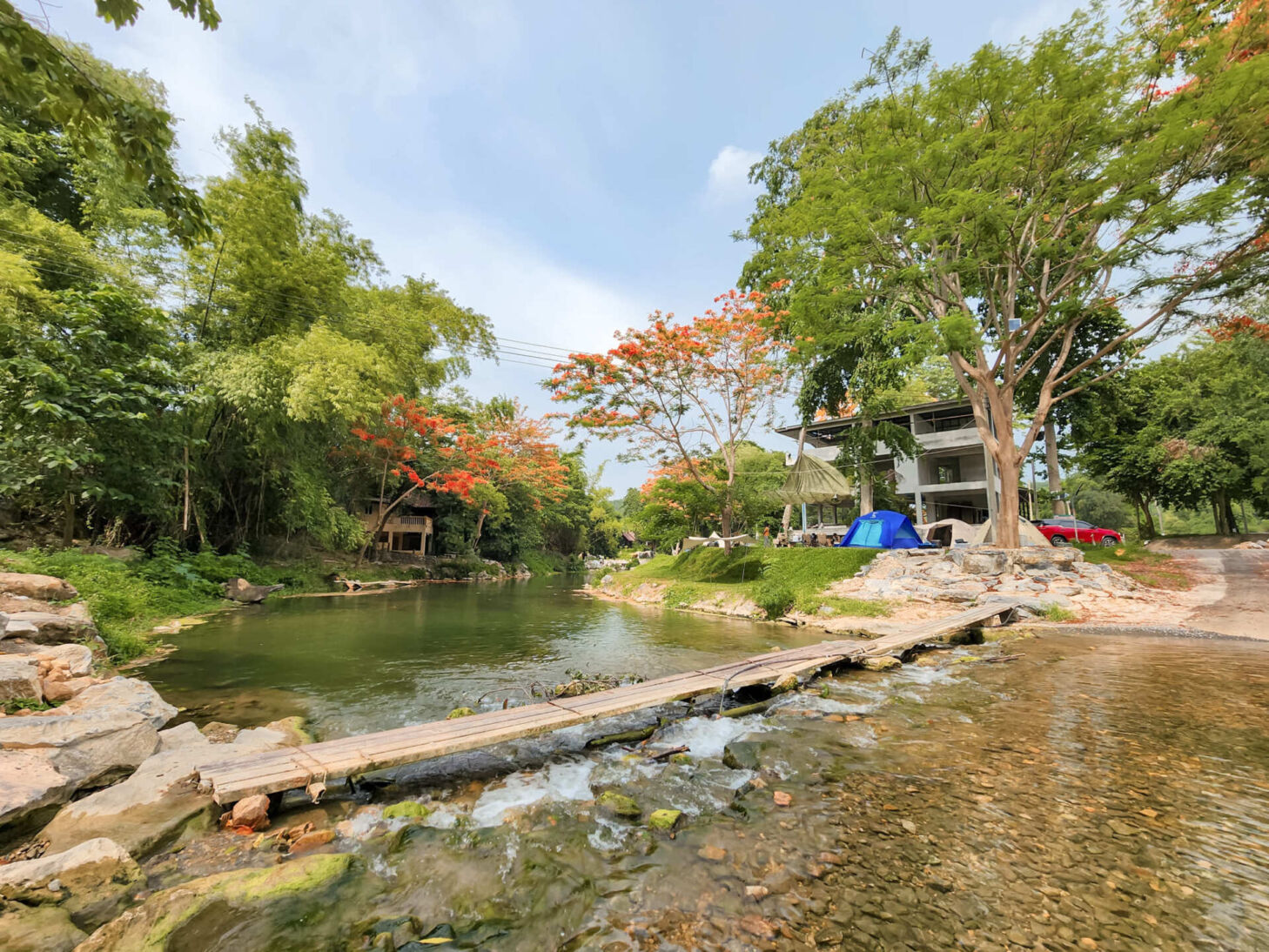 2 ไฮไลท์ของที่นี่คือ ต้องขับรถผ่านธารน้ำเล็กๆ เพื่อข้ามไปยังลานกางเต้นท์ เป็นการผจนภัยเล็กๆ ตื่นเต้นดี และจุดกางเต้นท์ที่อยู่ตรงริมน้ำ มีเรือจอดอยู่