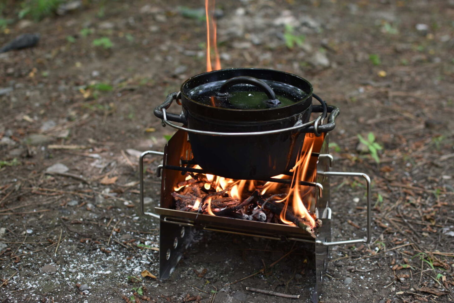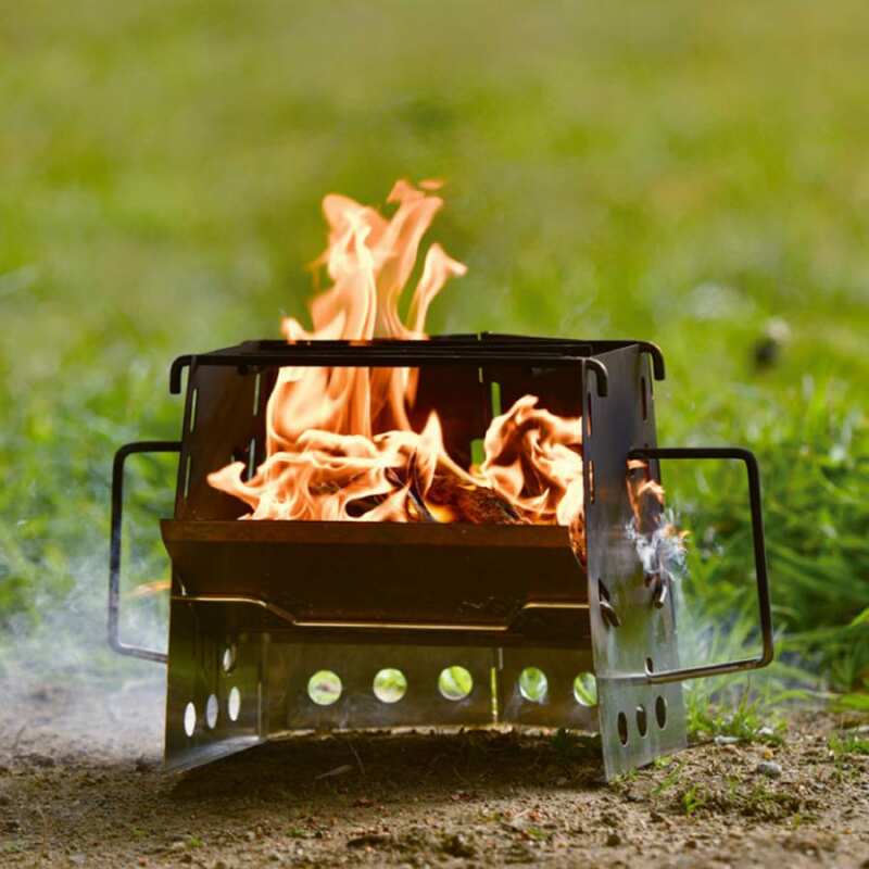 เตาฟืนสแตนเลส ขนาดเล็ก สำรับสาย Solo camping ที่จะทำให้คุณสนุกกับการทำอาหารบนกองไฟหรือถ่าน ทำจากแสตนเลส แข็งแรง ทนทาน ไม่เป็นสนิม