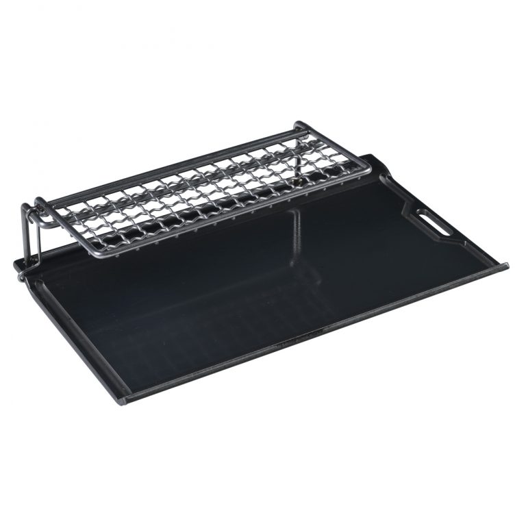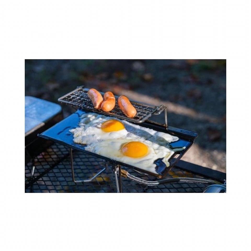 แผ่นเหล็ก กระทะร้อนสำหรับสายย่างสาย solo แถมมีตะแกรงพักเนื้อมาพร้อมในตัว หรืออุ่นอาหารได้ สามารถพับขึ้นลงพร้อมตัวล็อค