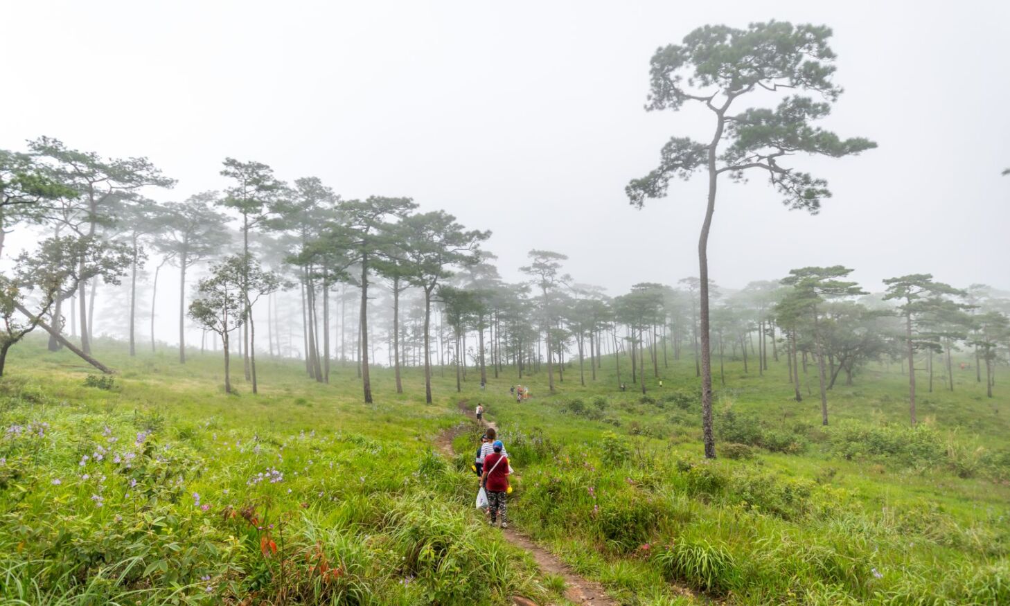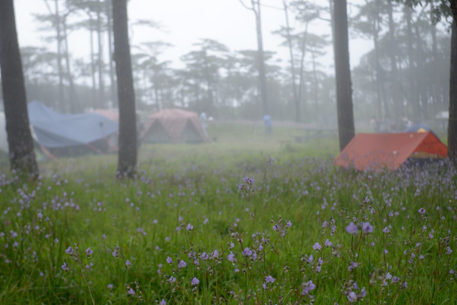 หรือจะเป็นทุ่งดอกไม้สีม่วงที่เรียกว่า ดอกหงอนนาค ที่ขึ้นอยู่เต็มลานต้นสนในช่วงหน้าฝน ทำให้หลายคนที่ได้มาต่างพากันเข้ามาชมความสวยงามกันอย่างไม่ขาดสายเลยทีเดียว ที่สำคัญที่นี่ยังมีสิ่งอำนวยความสะดวกใกล้จุดกางเต็นท์ไว้คอยให้บริการอีกด้วย เรียกได้ว่ามาคนเดียวก็ไม่ต้องกลัวลำบากเลย