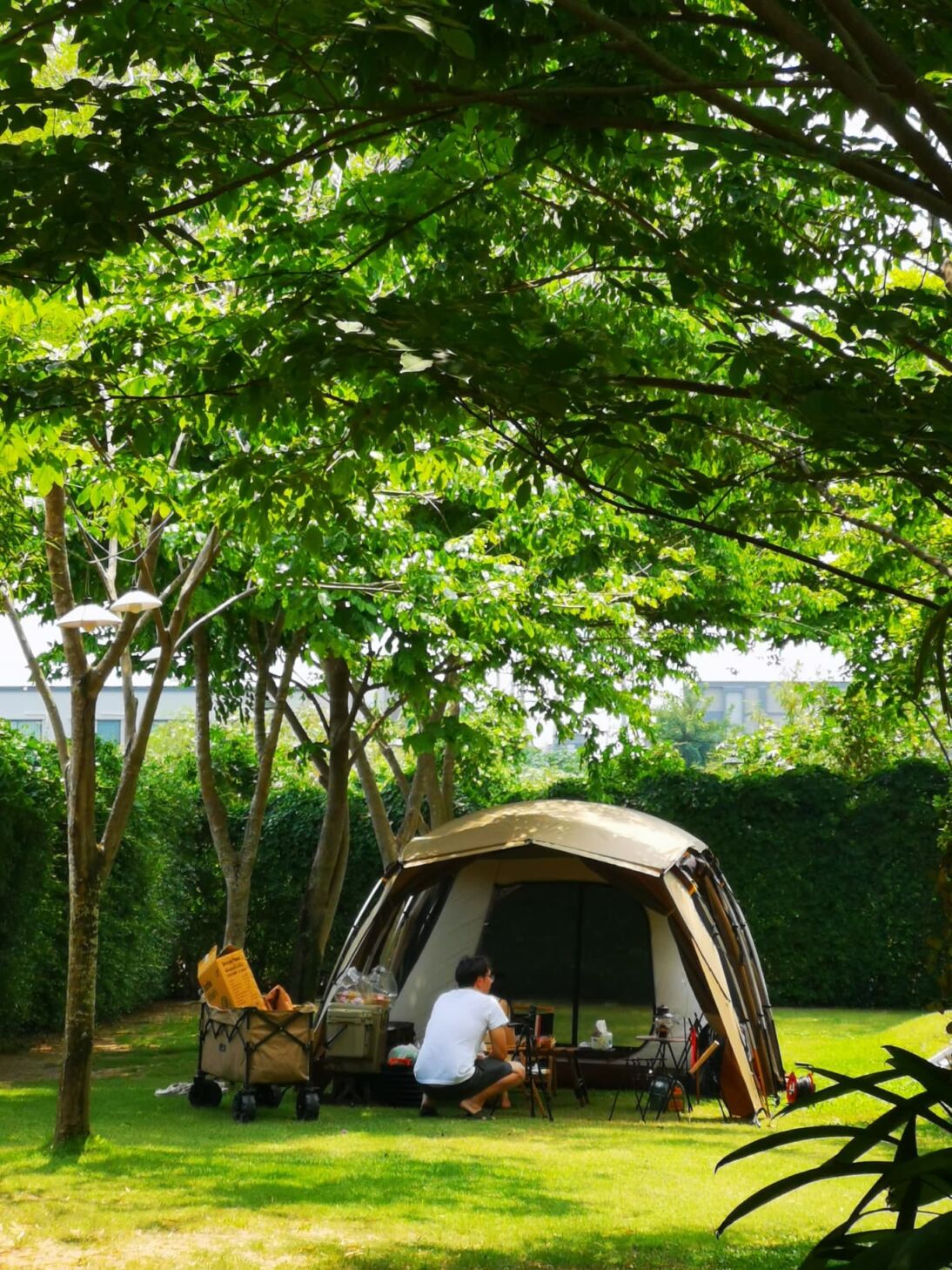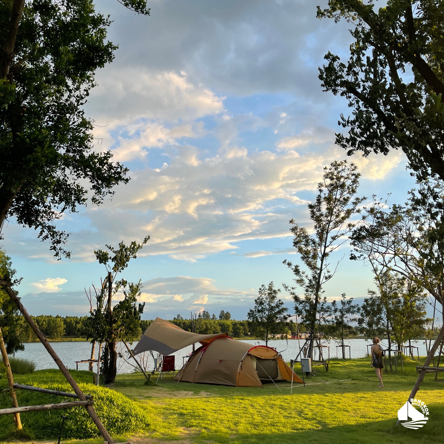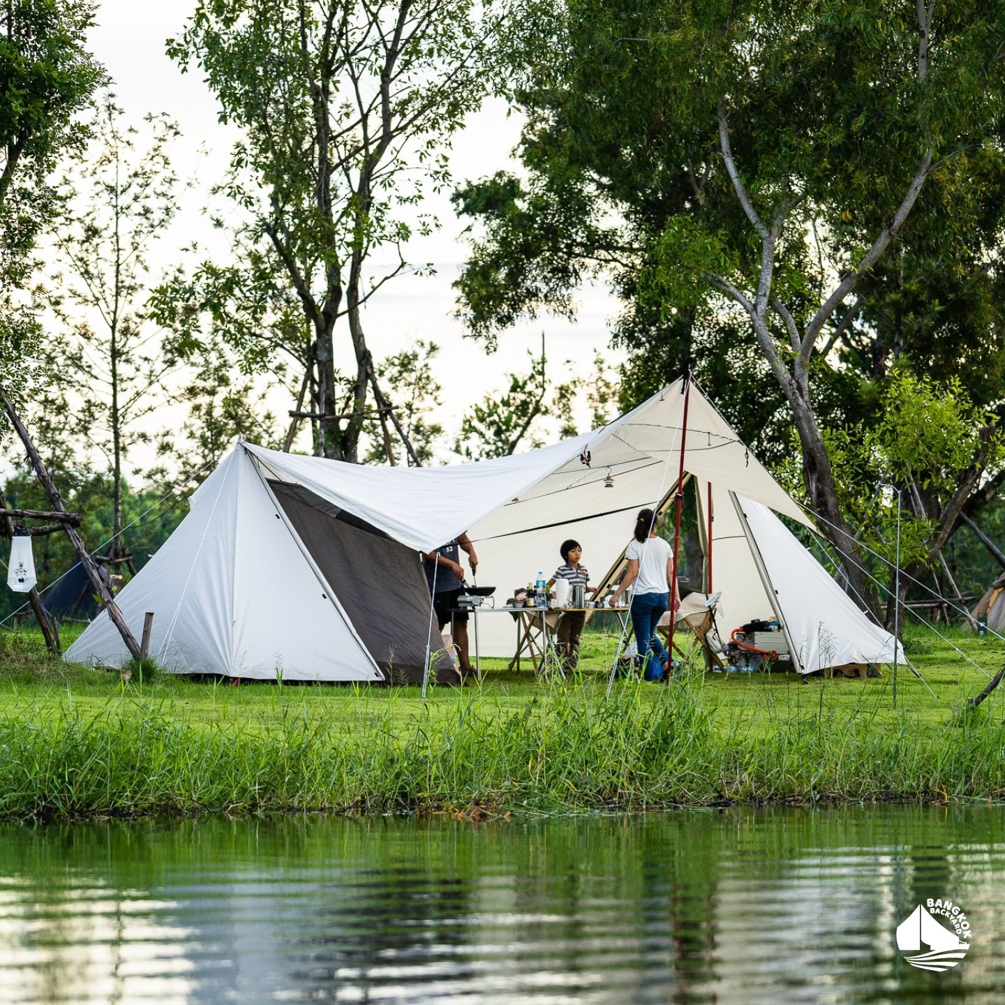 2. Bangkok Backyard คลองสามวา : ที่นี่รายล้อมไปด้วยต้นไม้ใหญ่ บริเวณจุดกางเต็นท์อยู่ติดบึงขนาดใหญ่ สามารถนำสัตว์เลี้ยงเข้าพักได้ด้วย ห้องน้ำสะอาด มีน้ำอุ่นให้อาบ มี wifi ให้ใช้ และมีจุดจ่ายไฟถึง 19 จุด แต่ต้องเตรียมปลั๊กพ่วงมาต่อไฟไปใช้ได้ แถมยังบริการน้ำแข็งฟรีไม่อั้น กินกันได้แบบจุกๆไปเลย