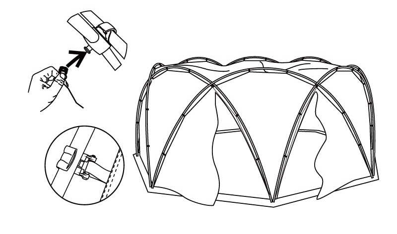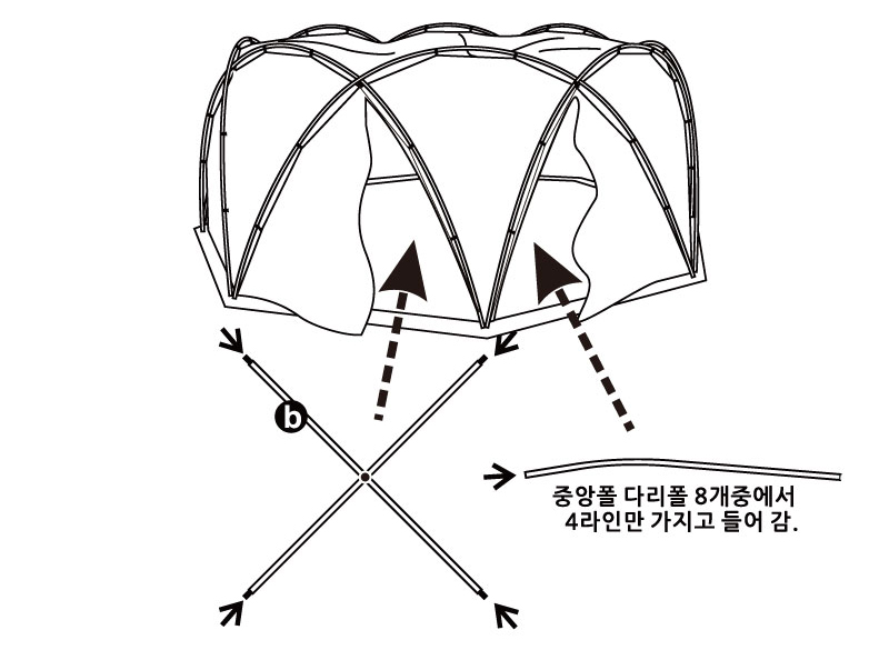 10. ติดเสากลาง a และเสากลาง b ไว้ที่ด้านบนของเพดานด้านในเต็นท์ (ดูรูปที่ 11)