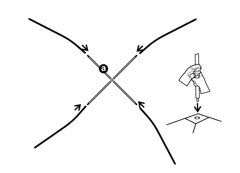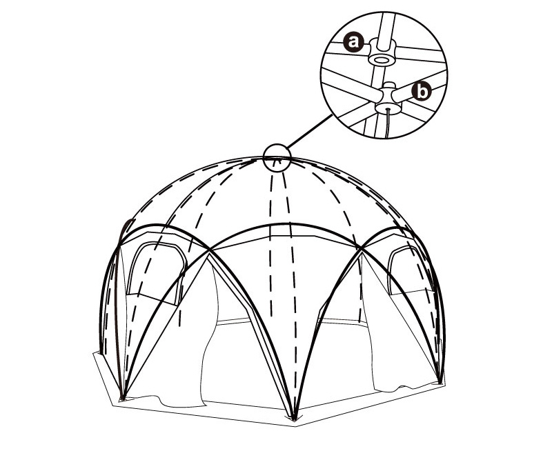 9. ต้องแน่ใจว่าได้ติดตั้งเสากลาง a ก่อน แล้วจึงติดตั้งเสากลาง b เชื่อมต่อภายในมุมแปดเหลี่ยมตามที่แสดงด้านล่าง