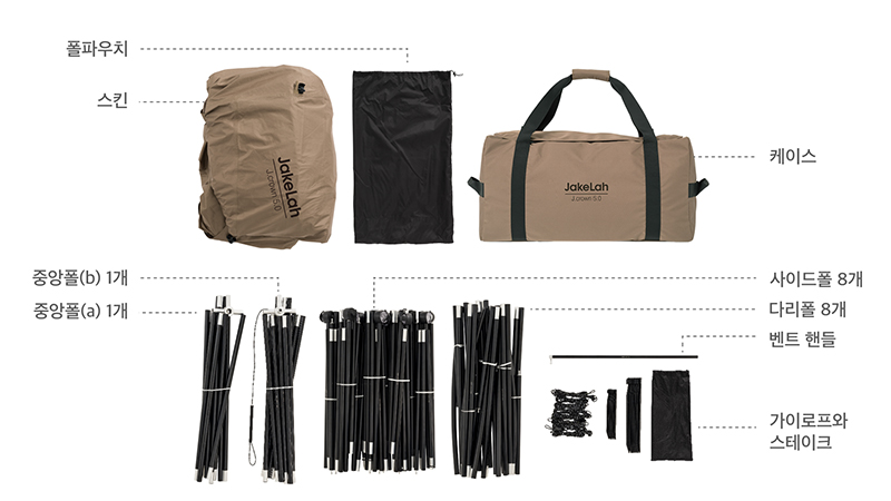 1. นำตัว Shelter ออกมาแล้วกางออกบนพื้นผิวเรียบ จากนั้นนำเสาออกมาแล้วประกอบเข้าด้วยกัน