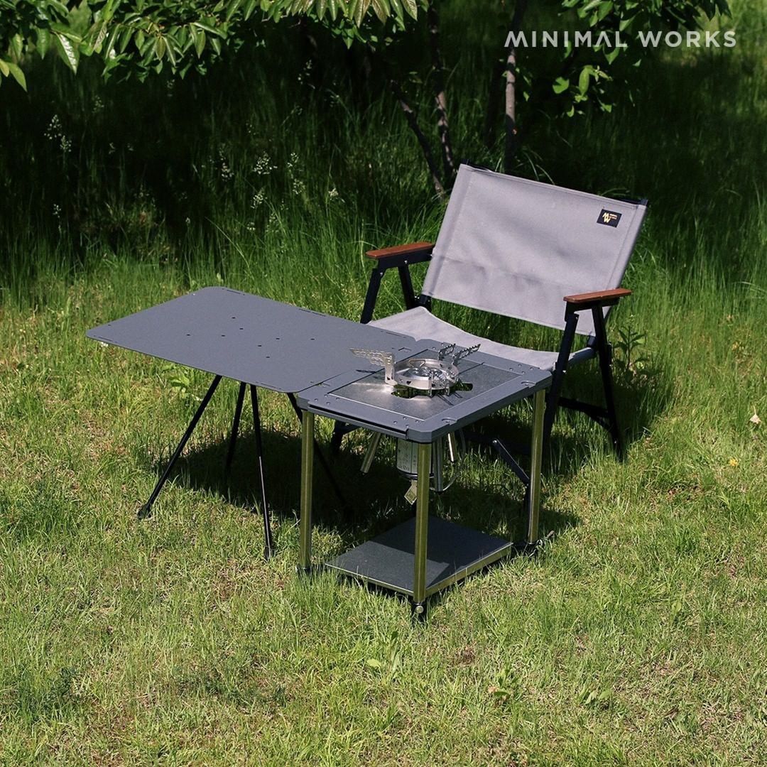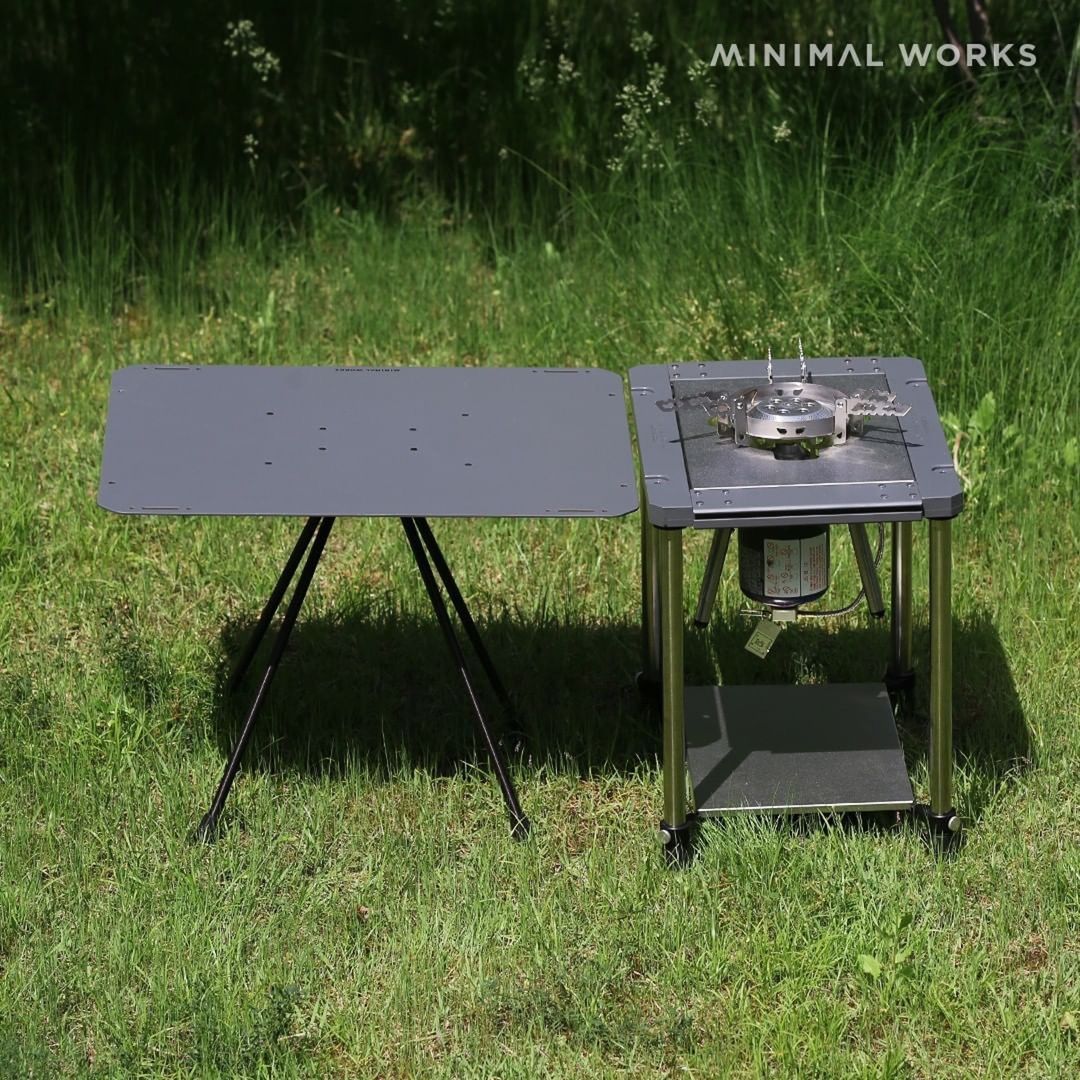 Minimal Works Soban Table ยังคงเป็นโต๊ะขนาดเล็ก แต่มีฟังก์ชั่นที่หลากหลาย สามารถใช้งานกับเตา IGT กับแบรนด์อื่นๆได้ และมี accessories ให้เลือกซื้อตามความต้องการของผู้ใช้งาน วัสดุของขาและท็อปเป็นสแตนเลส ส่วนตัวเฟรมจะเป็นอะลูมิเนียมและพลาสติก
