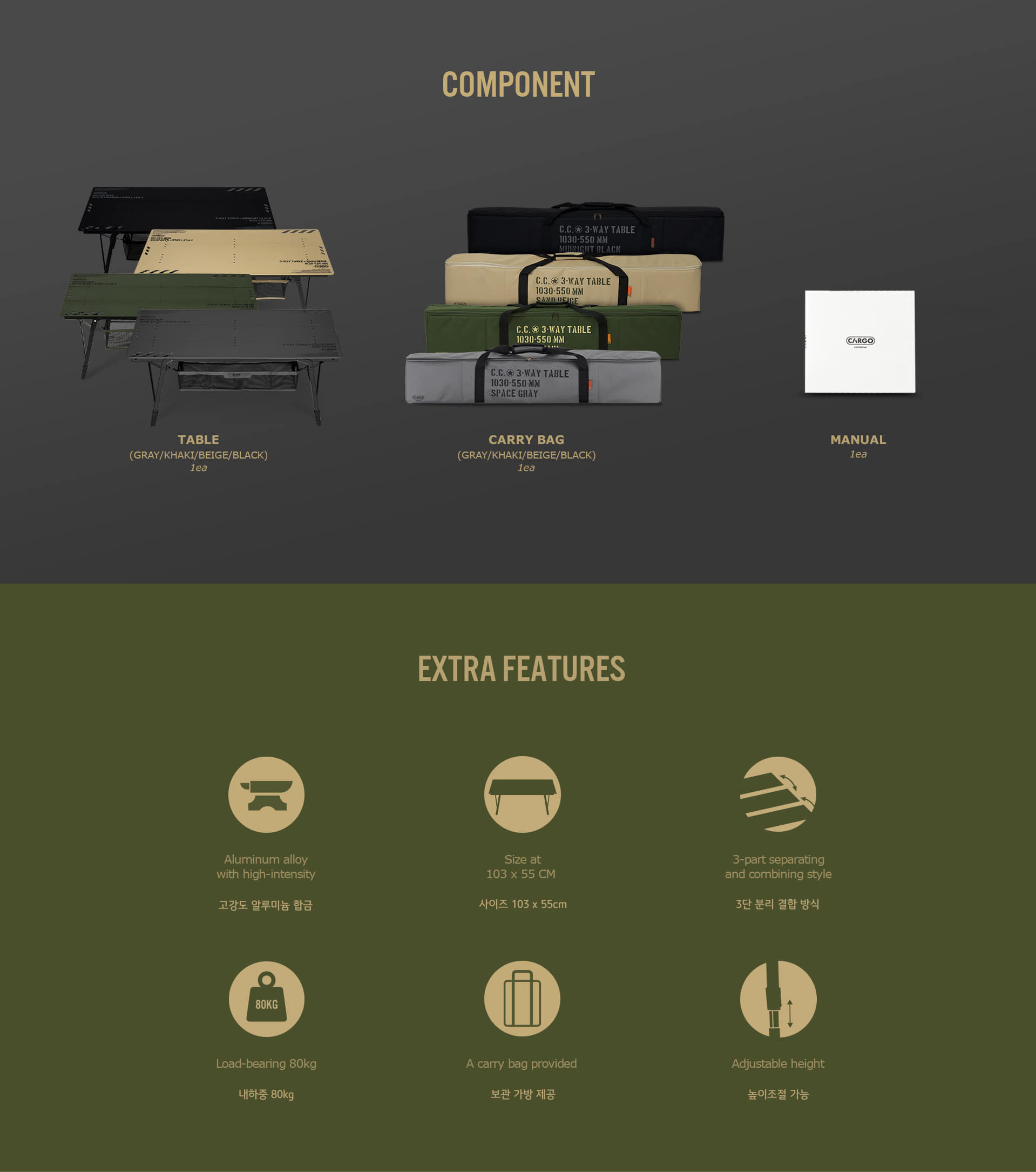 รายละเอียด : 3 Way Table โต๊ะแคมป์ปิ้งขนาดใหญ่ ที่รองรับได้หลายคน สามารถใช้เป็นโต๊ะทานอาหารหรืออื่น ๆ ตามต้องการ ข้อต่อยึดแน่น แข็งแรงทนทาน เคลื่อนย้ายได้อย่างปลอดภัยเมื่อยกโต๊ะ รับน้ำหนักได้ถึง 80 กิโลกรัม ขาโต๊ะทั้งสี่ออกแบบมาให้ปรับได้เอง สามารถปรับระดับและใช้งานได้แม้ในที่ที่พื้นไม่สมดุล และยังปรับระดับความสูงต่ำได้ตั้งแต่ 40 – 58 ซม. ตัวโต๊ะสามารถพับเก็บได้ มาพร้อมกระเป๋าสำหรับจัดเก็บอย่างดี