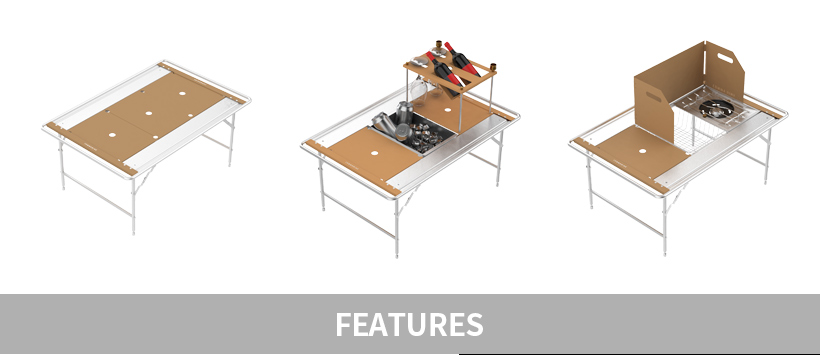 รายละเอียด : โต๊ะ igt ขนาด 3 unit จาก comma nine ออกแบบมาให้ปรับเปลี่ยนได้หลากหลาย ตามผู้ใช้งาน วัสดุทำจากอลูมิเนียม แข็งแรง ทนทาน รองรับน้ำหนักได้ถึง 40 กก พับเก็บได้ง่าย พกพาสะดวก เหมาะกับการออกไปแคมป์ปิ้ง หรือแม้แต่ใช้งานภายในบ้าน