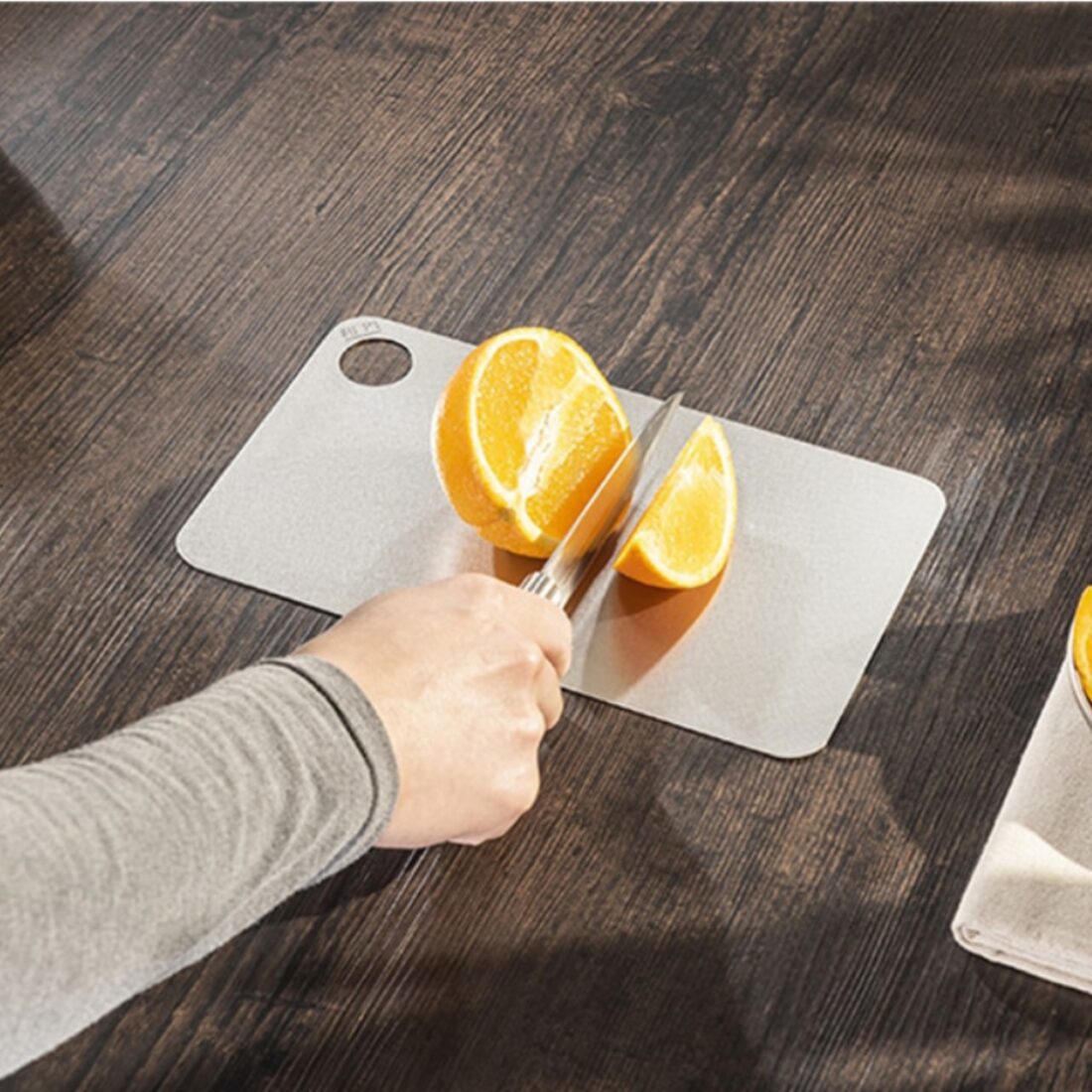 รายละเอียด : เขียงไทเทเนียมสุดล้ำที่ออกแบบมาเพื่อตอบโจทย์การใช้งานที่สะดวกสบายและปลอดภัย ด้วยวัสดุไทเทเนียมบริสุทธิ์ที่มีคุณสมบัติพิเศษในด้านความทนทาน ไม่เป็นสนิม ไม่เกิดเชื้อรา และไม่สะสมแบคทีเรีย ให้คุณมั่นใจในสุขอนามัยทุกครั้งที่ใช้งาน ด้วยความบางเพียง 1.2 มม. ทำให้เขียงรุ่นนี้มีน้ำหนักเบาเป็นพิเศษ เหมาะสำหรับพกพาและใช้งานได้อย่างคล่องตัว ทั้งในครัวที่บ้านและในกิจกรรมกลางแจ้ง ไม่ว่าจะเป็นการเดินป่า ตั้งแคมป์ หรือทำอาหารระหว่างการเดินทาง นอกจากนี้ ไทเทเนียมยังเป็นวัสดุที่ไม่มีสารเคลือบหรือสารพิษเจือปน ทำให้ไม่ดูดซับกลิ่นอาหารและไม่มีคราบสะสมเหมือนเขียงไม้หรือพลาสติกทั่วไป