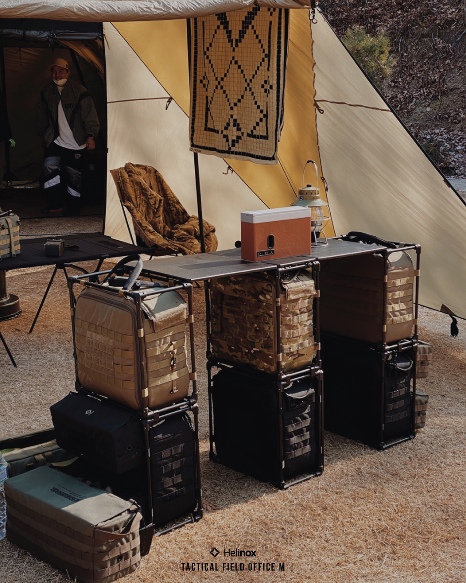 ชุดโต๊ะสนามสไตล์แทคติคอลที่ได้รับแรงบันดาลใจจากอุปกรณ์ทางทหาร ประกอบและถอดได้ง่าย รวดเร็ว ทนทาน เบาความคล่องตัวสูง เมื่อต้องการย้ายที่ทำงานออกจากห้องทำงานอันอุดอู้ไปสัมผัสธรรมชาติ มีสไตล์ น้ำหนักเบาและทนทาน คล่องตัวพอให้พกพาได้ง่ายเพื่อการนำติดตัวไปทุกที่ ด้วยน้ำหนักรวมเพียง 2.25 กิโลกรัม บรรจุในกระเป๋าขนาด 15 ลิตรที่เก็บได้สบายทั้งเก้าอี้ Helinox แล็ปท็อปคอมพิวเตอร์ โดรนและอุปกรณ์อื่นๆ มีอุปกรณ์เสริมสำหรับ Field Office ให้เลือกใช้ทั้งกระเป๋าแล็ปท็อปฯ สายสะพาย กระเป๋าย่อยบุนวม กระเป๋าย่อยและสายรัดกระชับ (Compressor) ชุด Tactical Field Office มีจุดเด่นคือใช้โครงอลูมินัม TH72m น้ำหนักเบาและทนจาก DAC กับผ้าโพลีเอสเตอร์หนา 600D ที่ตัดเย็บอย่างเรียบร้อย ประณีต