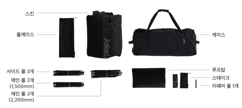 อุปกรณ์ภายในชุด : ตัวเต็นท์, ชุดเสา DAC, Roof Top, สมอบก (J.stake L 16 ชิ้น), เชือก (High tension guy rope: 3มม. ยาว 2ม. 4 เส้น / 3มม. ยาว 3ม. 4 เส้น), ถุงจัดเก็บ
