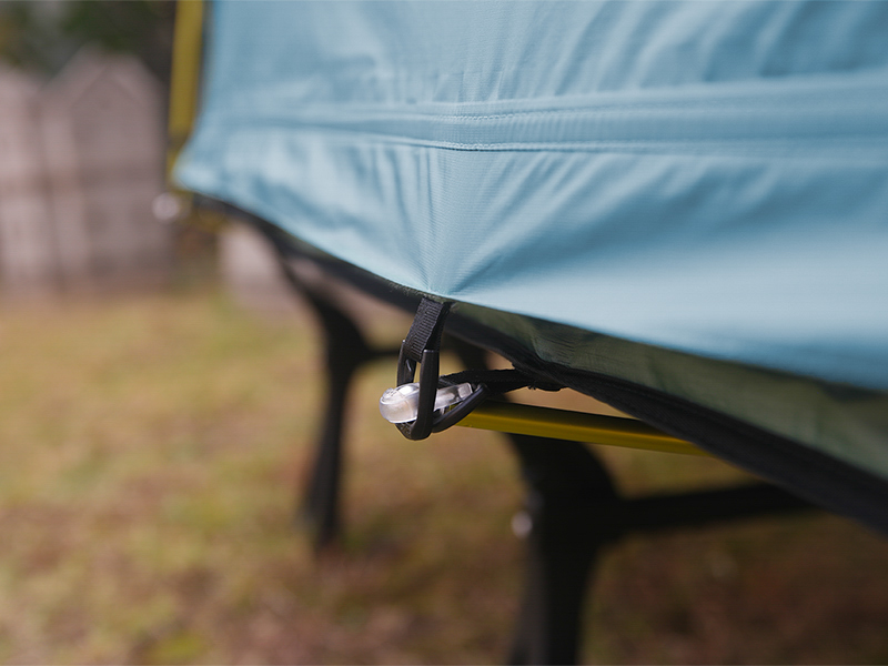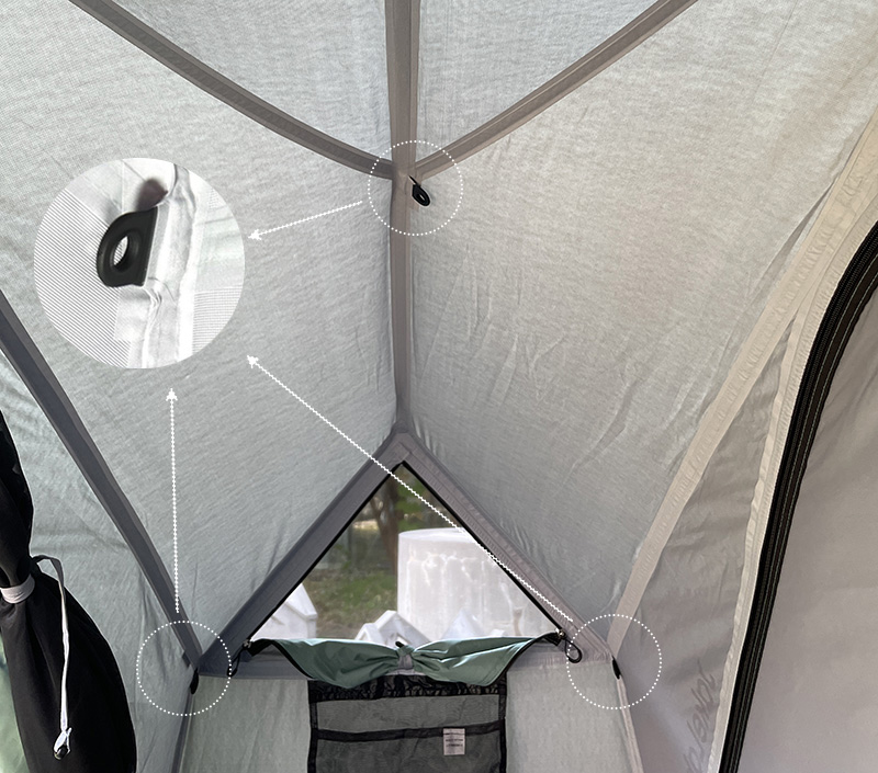 วัสดุ : ผ้า 3 ชั้น (ผ้าด้านล่าง: 70D N/T PU 2,000 มม , เสาเต็นท์: DAC NFL 9.3 + PF 7.5 ซิป : YKK No.5