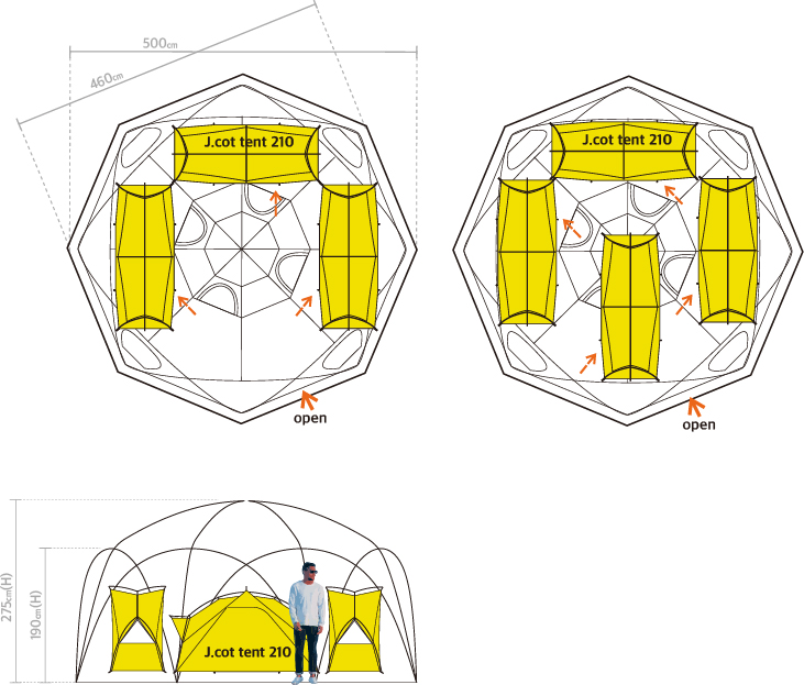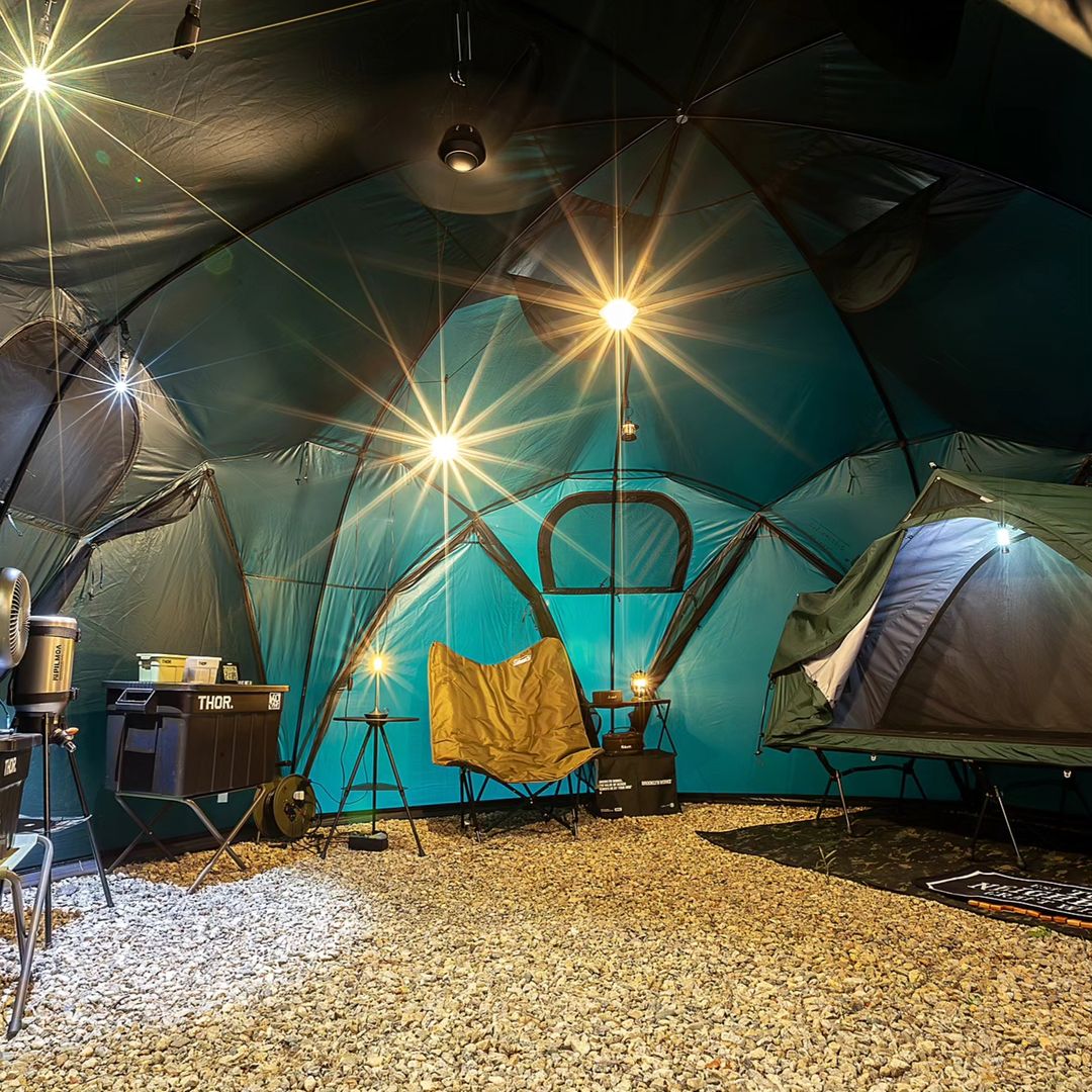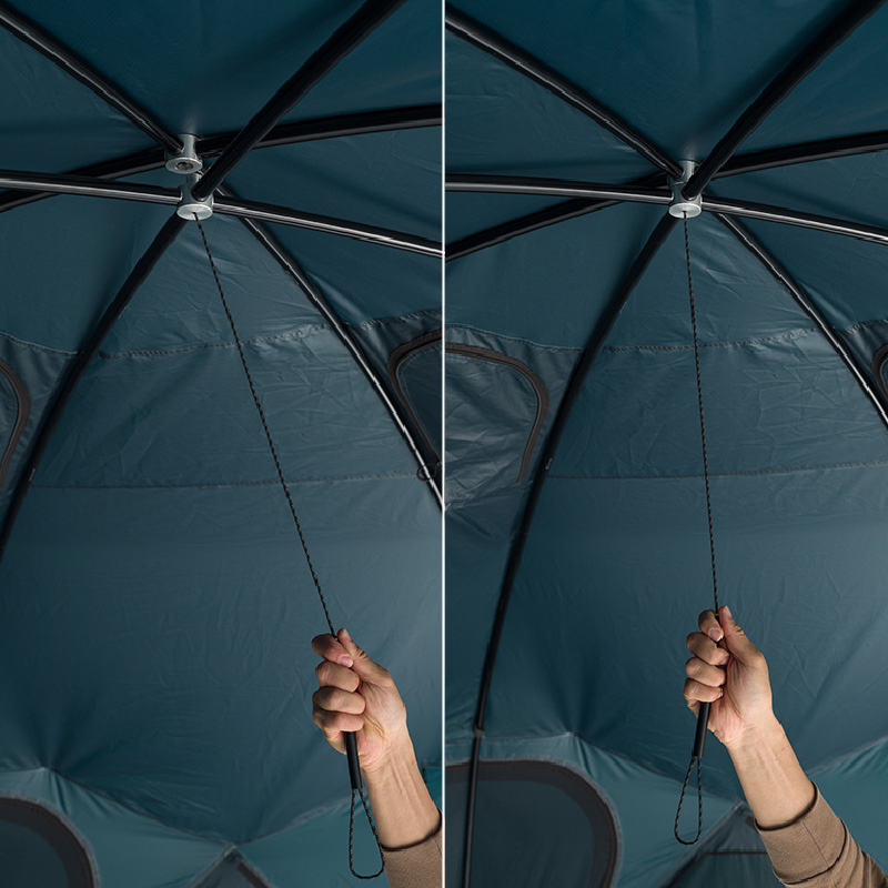 รายละเอียด : เป็น Shelter ทรงโดมขนาดใหญ่ที่มีเส้นผ่านศูนย์กลาง 5 ม. สามารถใช้เพื่อการตั้งแคมป์ส่วนตัวและการพบปะสังสรรค์ขนาดเล็กและขนาดกลางได้อย่างสะดวกสบาย แม้ว่าจะเป็น Shelter ขนาดใหญ่ แต่ก็มีโครงสร้างที่เบาและกางง่าย ทำจากผ้า 150d PR/pu/ซิลิโคน ซึ่งมีคุณสมบัติกันน้ำและป้องกันการเปรอะเปื้อนได้ดีเยี่ยม โดยทนแรงดันน้ำได้ 2,000 มม. และมีความทนทานสูง