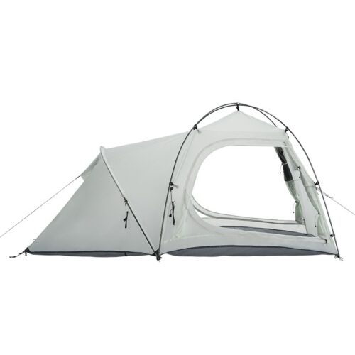 Smart Design for Headroom: ใช้โครงสร้างเสา 3 ต้น (3-Pole Structure) โดยขยับจุดตัดเสาไปด้านหน้าและเพิ่มเสาที่ 3 ด้านหลัง ทำให้ผนังเต็นท์มีความชันเกือบตั้งฉาก (Vertical Walls) เพิ่มพื้นที่เหนือศีรษะและช่วงไหล่ (Shoulder Width) ให้คุณนั่งคุยกันหรือเปลี่ยนเสื้อผ้าได้สะดวก ไม่รู้สึกอึดอัด