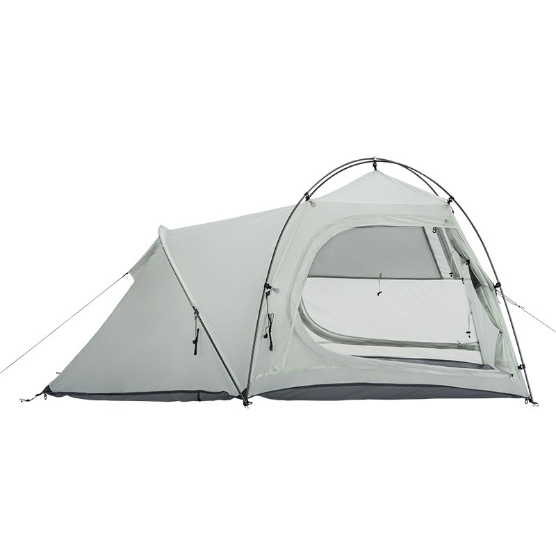 Smart Design for Headroom: ใช้โครงสร้างเสา 3 ต้น (3-Pole Structure) โดยขยับจุดตัดเสาไปด้านหน้าและเพิ่มเสาที่ 3 ด้านหลัง ทำให้ผนังเต็นท์มีความชันเกือบตั้งฉาก (Vertical Walls) เพิ่มพื้นที่เหนือศีรษะและช่วงไหล่ (Shoulder Width) ให้คุณนั่งคุยกันหรือเปลี่ยนเสื้อผ้าได้สะดวก ไม่รู้สึกอึดอัด