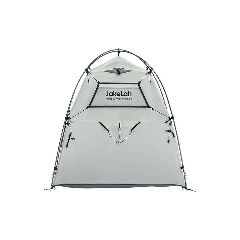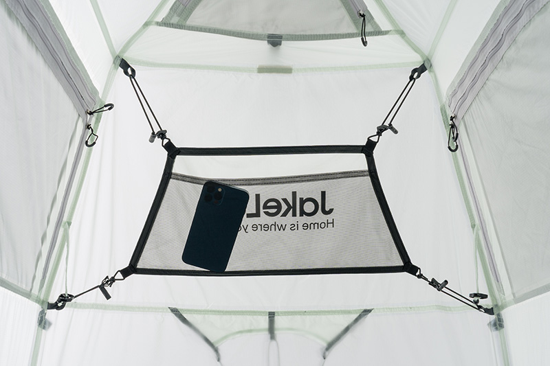 Smart Design for Headroom: ต่างจากเต็นท์ทรง X ทั่วไป J.solo lite ขยับตำแหน่งเสาหลักไปด้านหน้าเล็กน้อย ทำให้ผนังเต็นท์ด้านหน้าเกือบตั้งฉาก ช่วยเพิ่มพื้นที่เหนือศีรษะ (Headroom) ให้กว้างขวาง นั่งสบาย ไม่รู้สึกอึดอัด