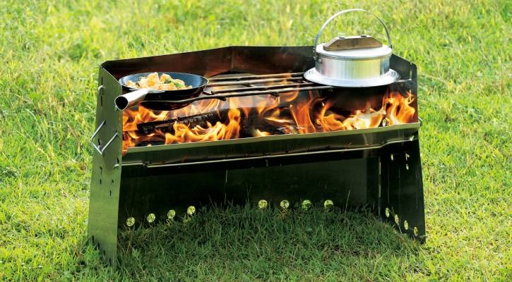จุดเด่นยังคงเหมือนรุ่นน้อง คือสามารถ “ถอดชิ้นส่วนตะแกรงออก” เพื่อฝังหม้อก้นลึกให้จมลงไปใกล้เปลวไฟได้ แต่สิ่งที่พิเศษกว่าคือ เมื่อฝังหม้อที่ด้านซ้ายและขวาแล้ว “พื้นที่ตรงกลาง” ยังเหลือตะแกรงเหล็กให้วางหม้อเล็กๆ, กาน้ำ, หรือกระทะ Skillet 7 นิ้ว ได้อีก 1 ใบ ทำให้คุณทำอาหารได้ถึง 3 เมนูในเวลาเดียวกัน!