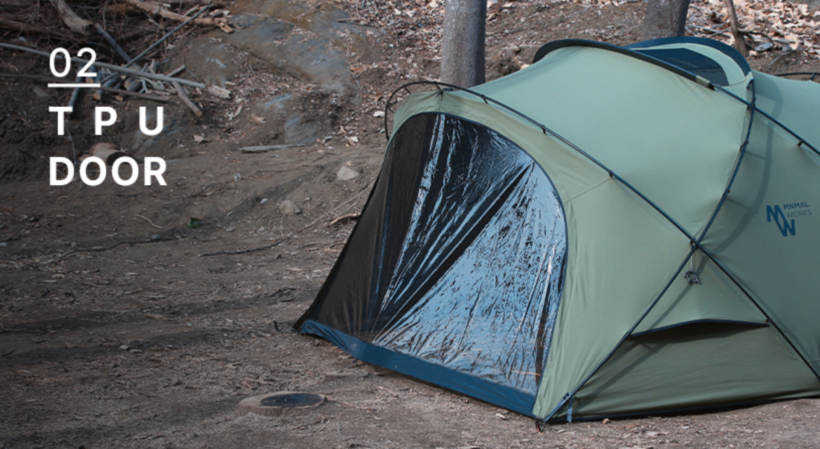 ข้อได้เปรียบของวัสดุ T/C ของ Shelter GH คือให้สภาพแวดล้อมในร่มที่สะดวกสบายและมีการควบแน่นเพียงเล็กน้อย และโครงสร้างสมมาตรของประตูคู่ช่วยให้เข้าและออกได้ฟรี