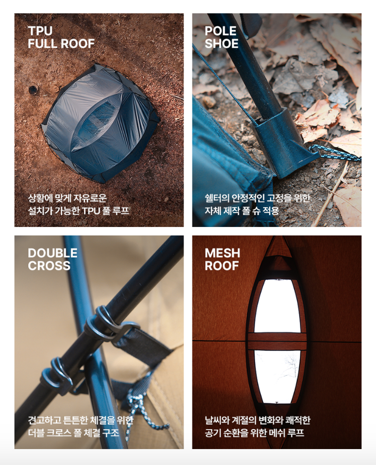 องค์ประกอบที่มีรายละเอียด เช่น ฝาครอบเสาช่วยให้ผู้ใช้ติดตั้งได้ง่ายและรวดเร็ว และการเพิ่มตาข่ายเสริม ประตู TPU และห้องโถงของ Shelter GH ทำให้ผู้ใช้มีอิสระในการปรับให้เข้ากับการใช้งานและสภาพ