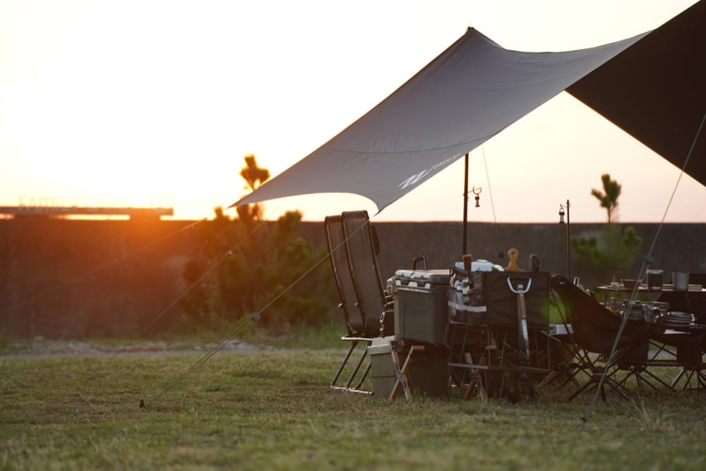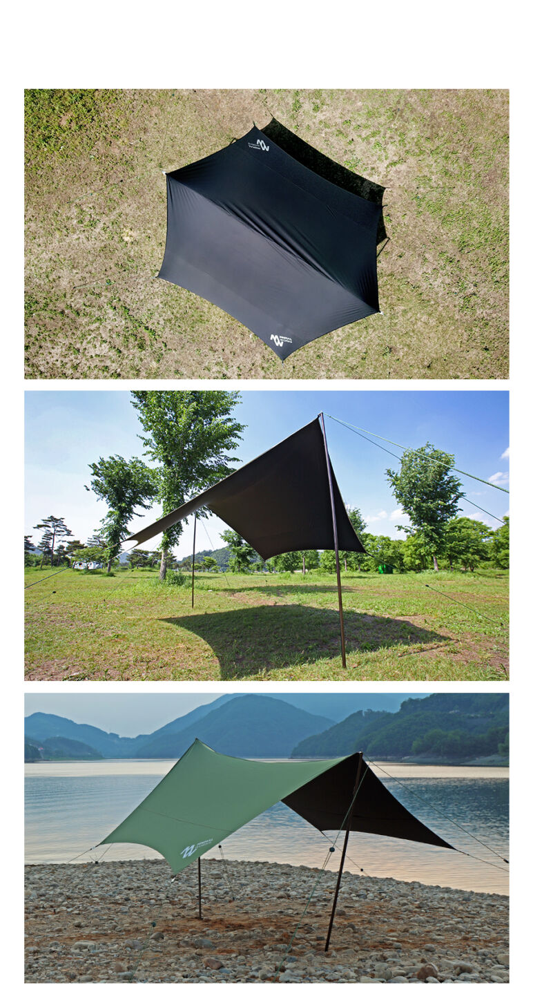 Minimal Works Bluehole hexa tarp ทาร์ปอเนกประสงค์ ที่ตัดรังสี UV ได้มากกว่า 95% ด้วยค่า UPF 50+ และทนแรงดันน้ำได้ 10,000 มม. ด้วยการเคลือบเม็ดสีดำที่ปิดกั้นแสงและป้องกันไม่ให้แสงแดดส่องผ่าน คุณจึงสามารถเพลิดเพลินกับการตั้งแคมป์ได้แม้ในฤดูร้อน นอกจากนี้ยังทนแรงดันน้ำได้ 10,000 มม. กันน้ำได้ดีเยี่ยม จึงใช้งานได้ดีแม้ในสภาพอากาศที่ฝนตก