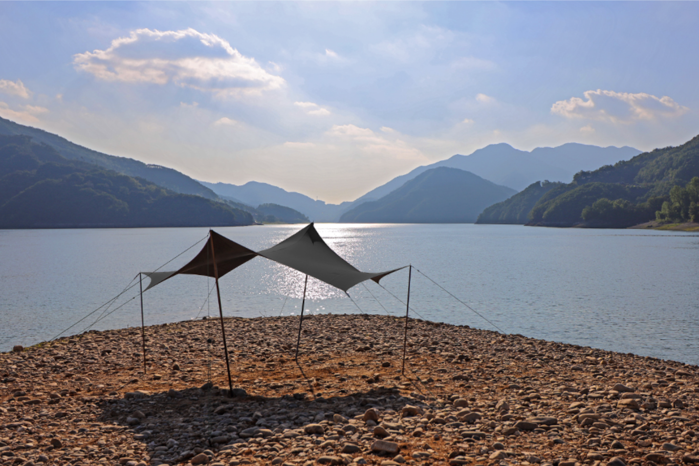 สามารถใช้กับทาร์ป หรือฟลายชีทได้หลากหลายขนาด พับเก็บได้เหลือแค่ 58 ซม.