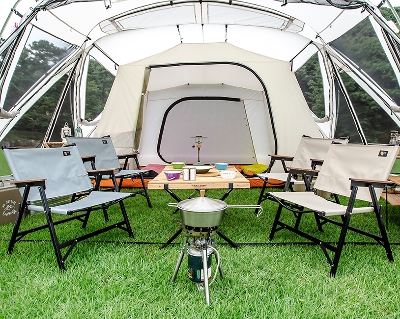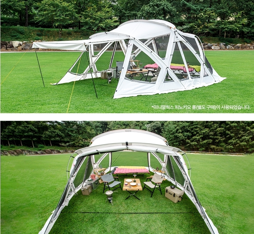 Minimal works  Landmark tent สี Ivory เต็นท์รุ่นใหม่ล่าสุดปี 2023 ที่ได้รับการออกแบบและพัฒนาจากโมเดลเริ่มต้นปี 2016(สีส้ม) การออกแบบเสาไขว้แบบ Double cross เพิ่มความแข็งแรง มั่นคง ตาข่ายมุ้งรอบด้าน และยังสามารถปิดทึบเพิ่มความเป็นส่วนตัว มาพร้อม Rain Cover และอุปกรณ์เสริม ครบเซ็ต พร้อมที่จะลุยทุกฤดู