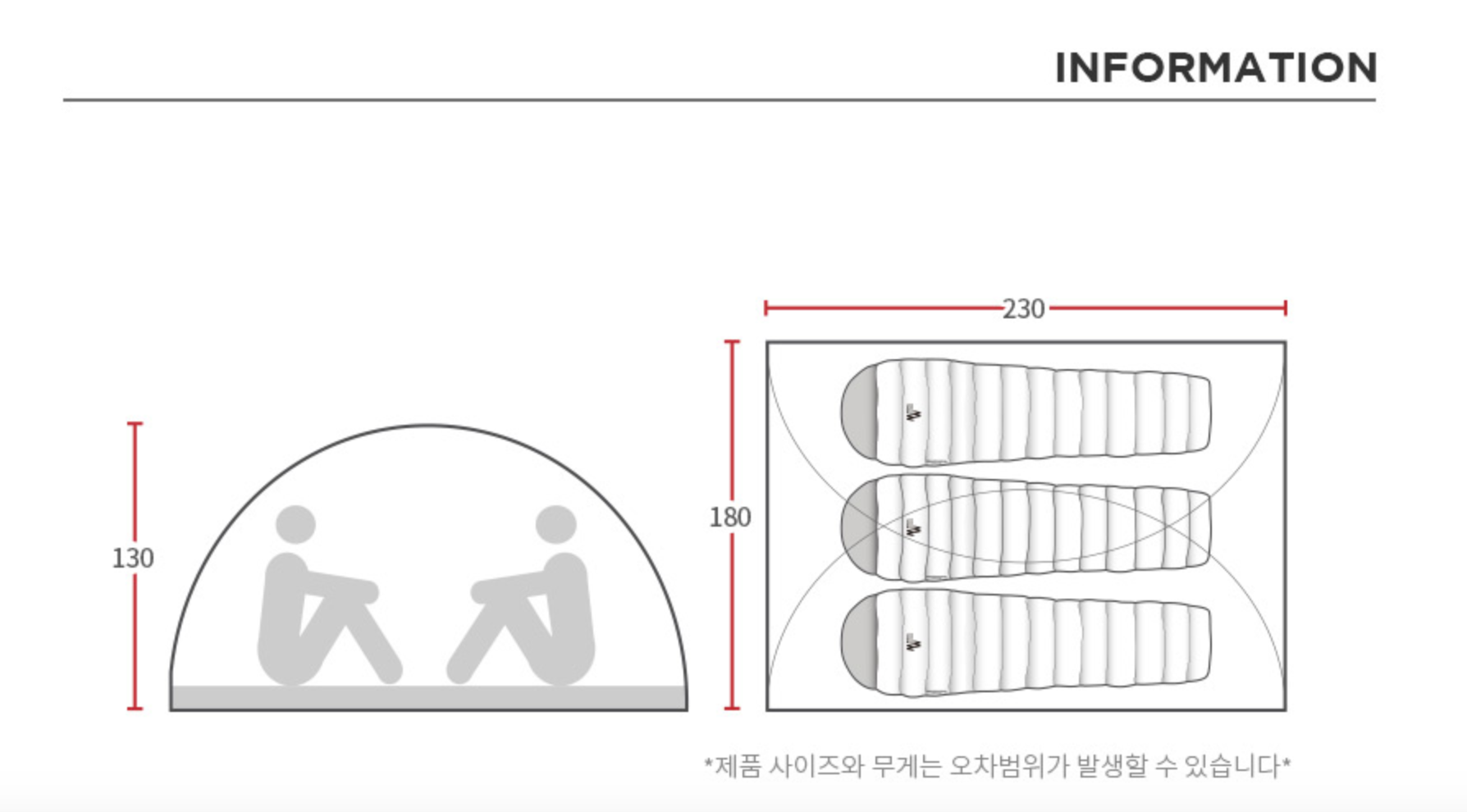 – Tent : Nylon20D PU/SIL(waterproof 2,000mm)