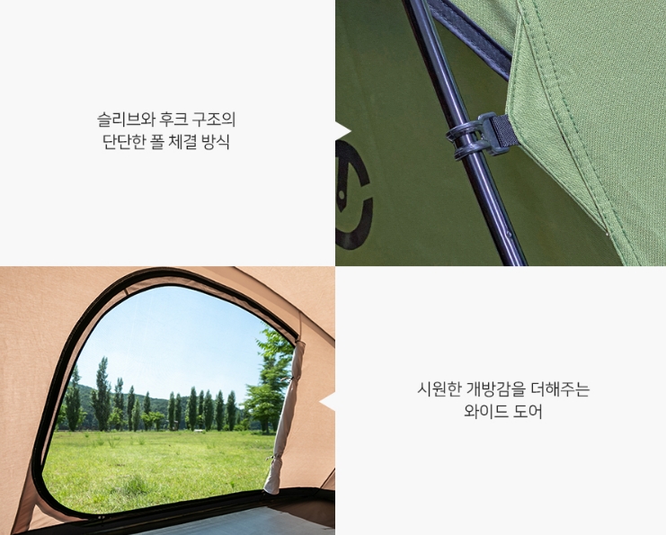 และสามารถเปิดและปิดได้อย่างอิสระ การใช้วัสดุ TC TECH AC-452 ซึ่งมีลดการเกิดการควบแน่นของหยดน้ำภายในเต้นท์ ทนทานทำความสะอาดง่าย สีสันสวยงามไม่เหมือนใคร