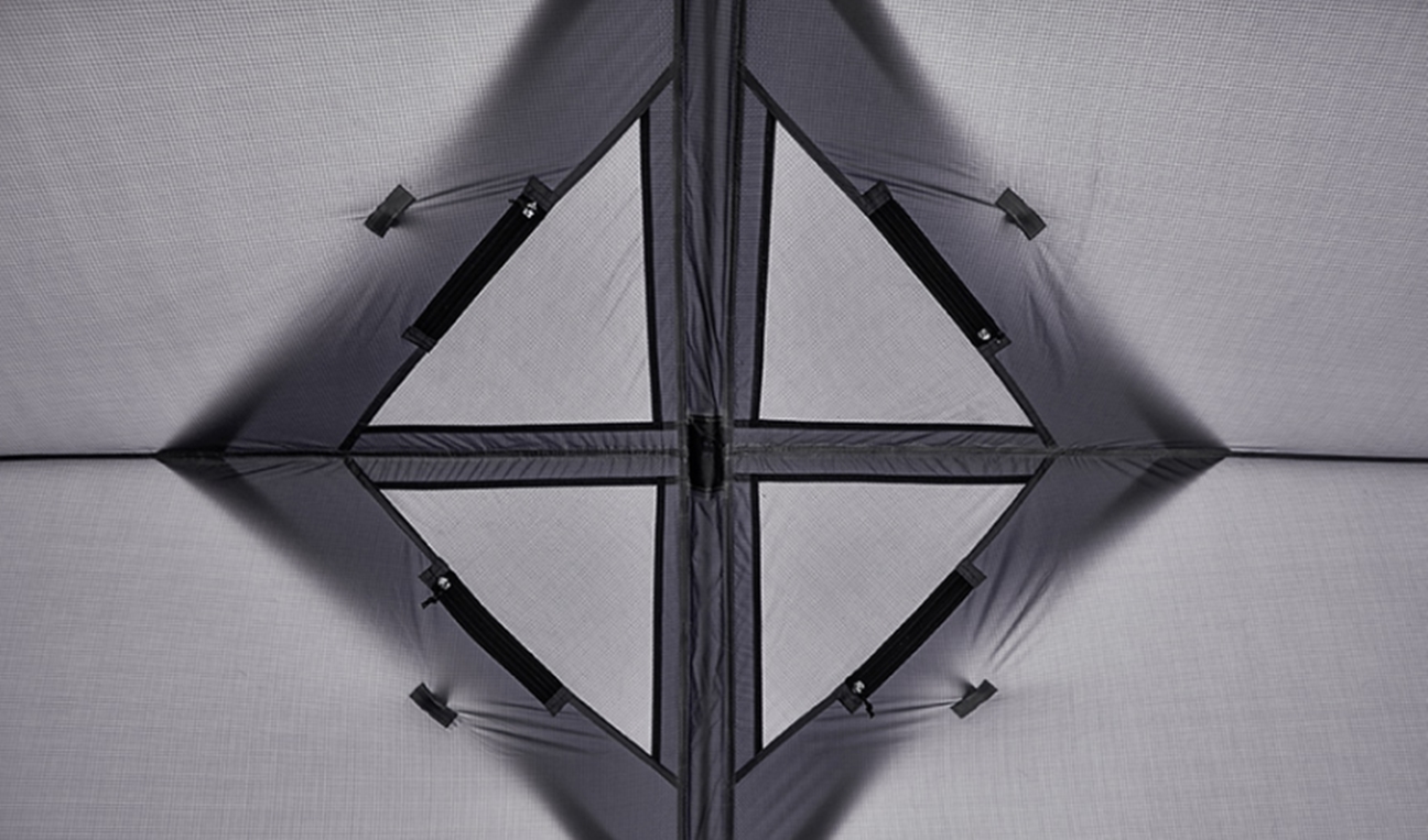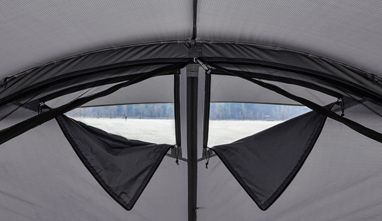ตัว Shelter มาพร้อมมุงตาข่ายรอบตัวมาให้ Shelter สามารถกางออกได้หลายรูปแบบ เพื่อเพิ่มพื้นที่การใช้งาน สามารถใส่ Inner (จำหน่ายแยก) หรือ Ground sheet ได้