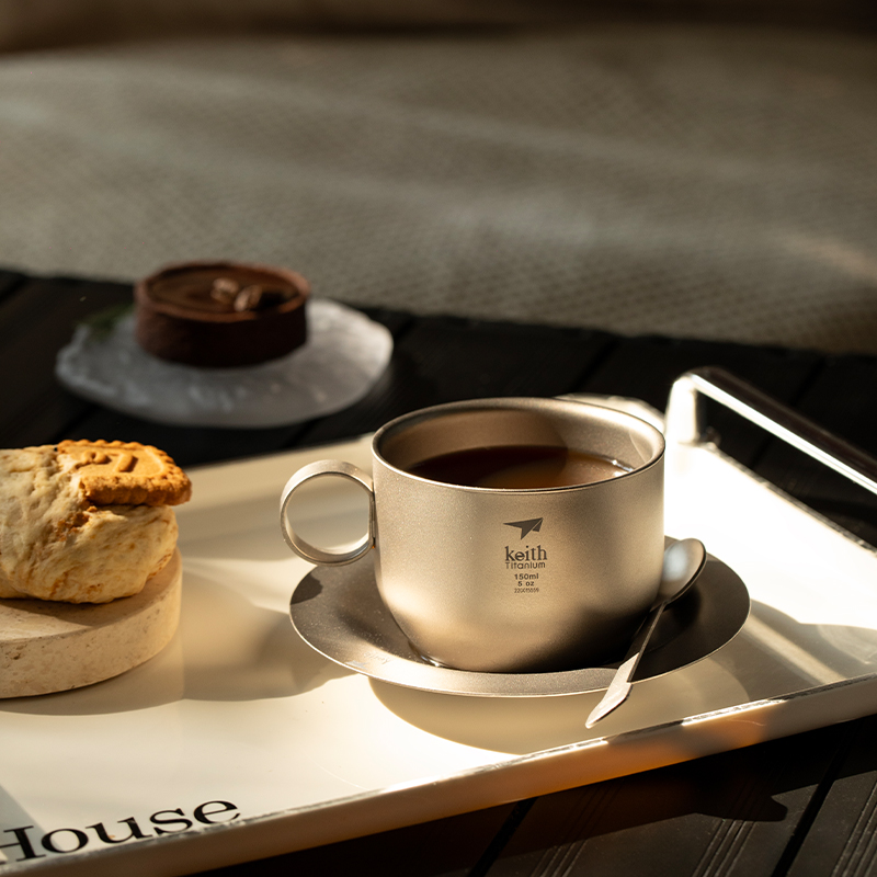 รายละเอียด : ให้คุณดื่มด่ำกับชากาแฟโปรดของคุณได้อย่างเต็มที่ ด้วยชุดแก้วกาแฟไทเทเนียม Keith Ti3601 ผลิตจากไทเทเนียมบริสุทธิ์ จึงไม่รบกวนรสชาติของกาแฟ ให้คุณได้รสของกาแฟแท้ๆ ไม่มีรสโลหะ หรือรสพลาสติคเจือปน ในชุดจะประกอบด้วย ถ้วยกาแฟแบบ 2 ชั้น (Double Wall) ช่วยรักษาความร้อนของกาแฟในถ้วยให้นานยิ่งขึ้น ตัวถ้วยขนาดความจุ 150 ml นอกจากนั้นยังมี จานรอง และช้อน ทั้งหมดผลิตจากไทเทเนียม จึงมีน้ำหนักเบา น้ำหนักรวมทั้งชุดเพียง 105g