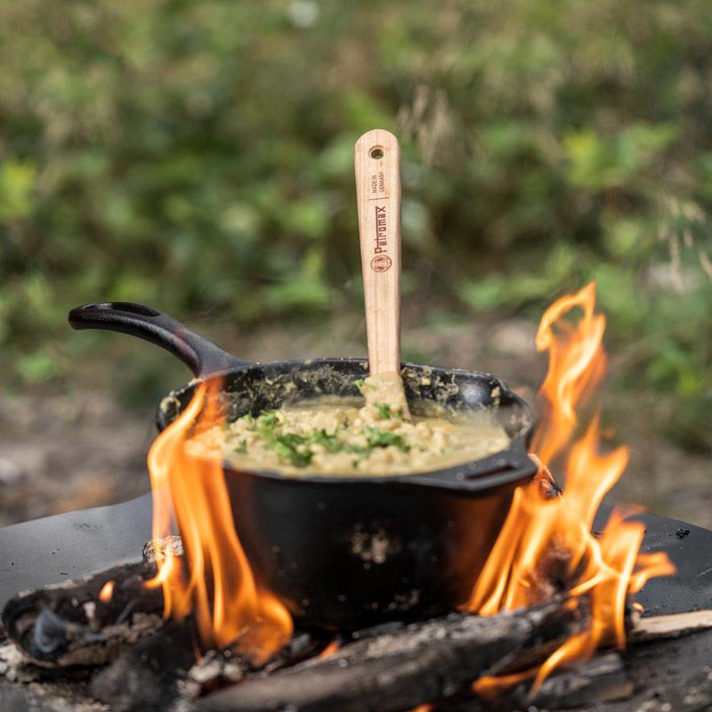 ไม้พายทำอาหารจาก Petromax ทำจากไม้เชอรี่ สามารถหมุนคนอาหารได้อย่างง่ายดาย ขอบแบนโค้งเล็กน้อยจนถึงปลายไม้ ทำให้สะดวกมากขึ้นในการใช้งาน
