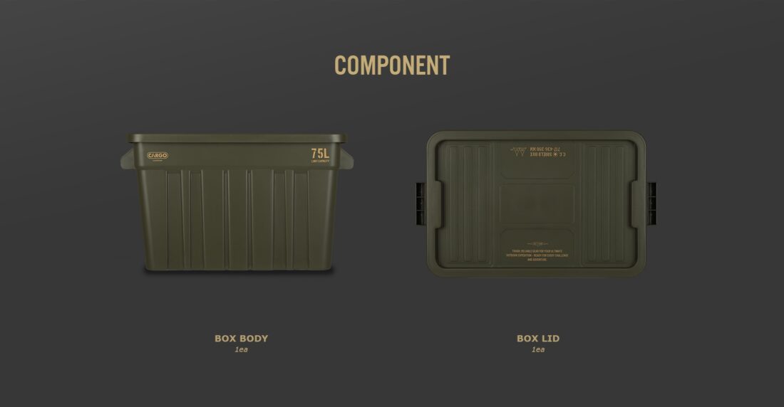CC SHIELD BOX ลังเก็บอุปกรณ์อเนกประสงค์ระดับพรีเมียมจาก Cargo Container ที่ออกแบบมาเพื่อฉีกข้อจำกัดการจัดเก็บทั้งในและนอกสถานที่ ด้วยดีไซน์ที่แข็งแกร่งทนทานสไตล์ Industrial ผสานกับความจุขนาดใหญ่ถึง 75 ลิตร ทำให้คุณสามารถจัดเก็บอุปกรณ์แคมป์ปิ้ง เครื่องครัว หรือเครื่องมือต่างๆ ได้อย่างเป็นระเบียบ ไม่เพียงแค่เป็นกล่องเก็บของ แต่ยังสามารถรับน้ำหนักได้สูงถึง 100 กก. จึงใช้เป็นที่นั่งหรือโต๊ะชั่วคราวในแคมป์ได้สบาย มาพร้อมฟังก์ชันการใช้งานที่คิดมาอย่างดี เช่น ฝาปิดระบบ Anti-Flip Lock, ด้ามจับที่ถนัดมือ ตอบโจทย์สายลุยที่ต้องการความทนทานและสไตล์ที่เหนือกว่า