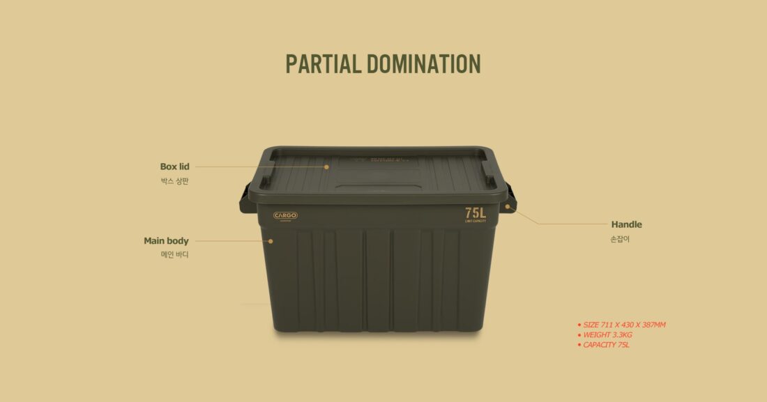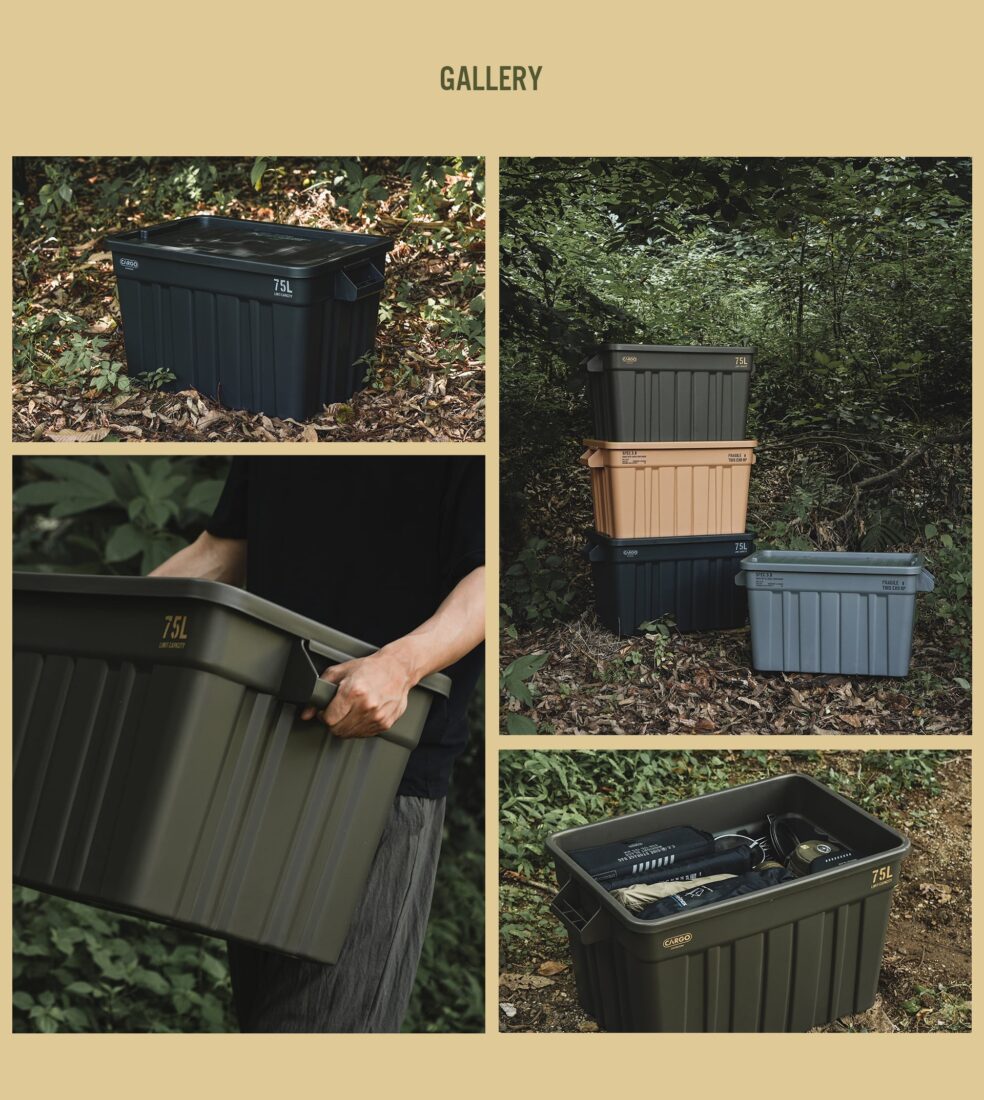 ความจุสะใจ แข็งแกร่งทนทาน ด้วยความจุ 75 ลิตร ทำให้สามารถใส่อุปกรณ์ได้หลากหลาย ตัวกล่องผลิตจากพลาสติก PP (Polypropylene) คุณภาพสูง มีความเหนียว ทนทานต่อแรงกระแทก แสงแดด และความชื้น ไม่เสียรูปง่าย ฝาบนออกแบบมาให้รับน้ำหนักกดทับได้สูงสุดถึง 100 กก. จึงสามารถใช้นั่งหรือวางของหนักได้สบายๆ