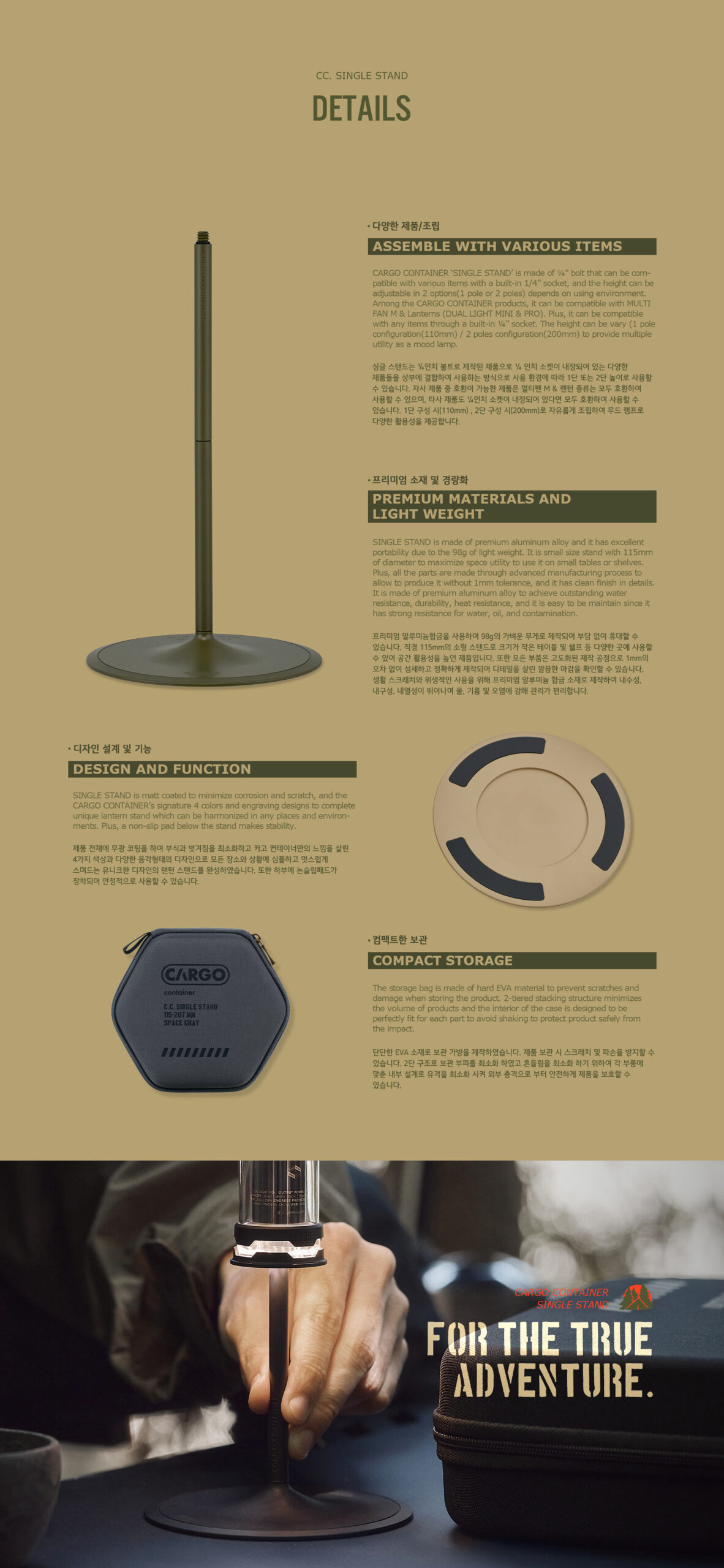รายละเอียด : SINGLE STAND ขาตั้งอเนกประสงค์ ทำจากโบลต์ขนาด 1/4″ ที่สามารถใช้ได้กับสิ่งของต่างๆ โดยมีเกลียวขนาด 1/4″ ในตัว โดยสามารถติดตั้งได้ในระดับความสูง 2 แบบ แบบ 1 (ความสูง 110 มม.) / แบบ 2 เสา (ความสูง 200 มม.) ทั้ง 4 สีมีการเคลือบด้านคุณภาพสูงและโลโก้แกะสลัก การออกแบบระดับพรีเมียม อีกทั้งยังมาพร้อมกระเป๋าจัดเก็บ EVA