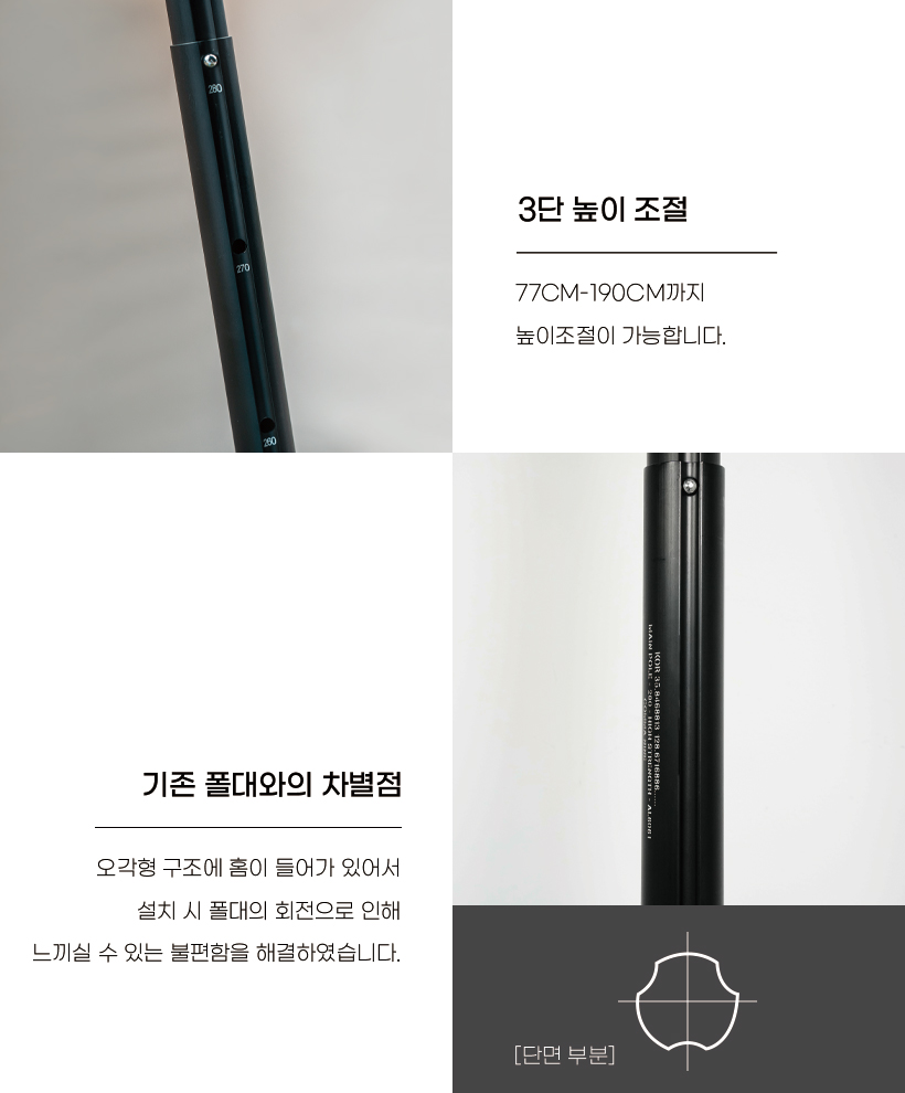 รายละเอียด : เสาทาร์ป Slide Main Pole (190) จาก comma nine ที่ปรับระดับความสูงได้ 3 ระดับ ตั้งแต่ 81-190ซม. วัสดุทำจาก Aluminum 6061 เกรดพรีเมียม แข็งแรง ทนทาน ใช้งานง่าย