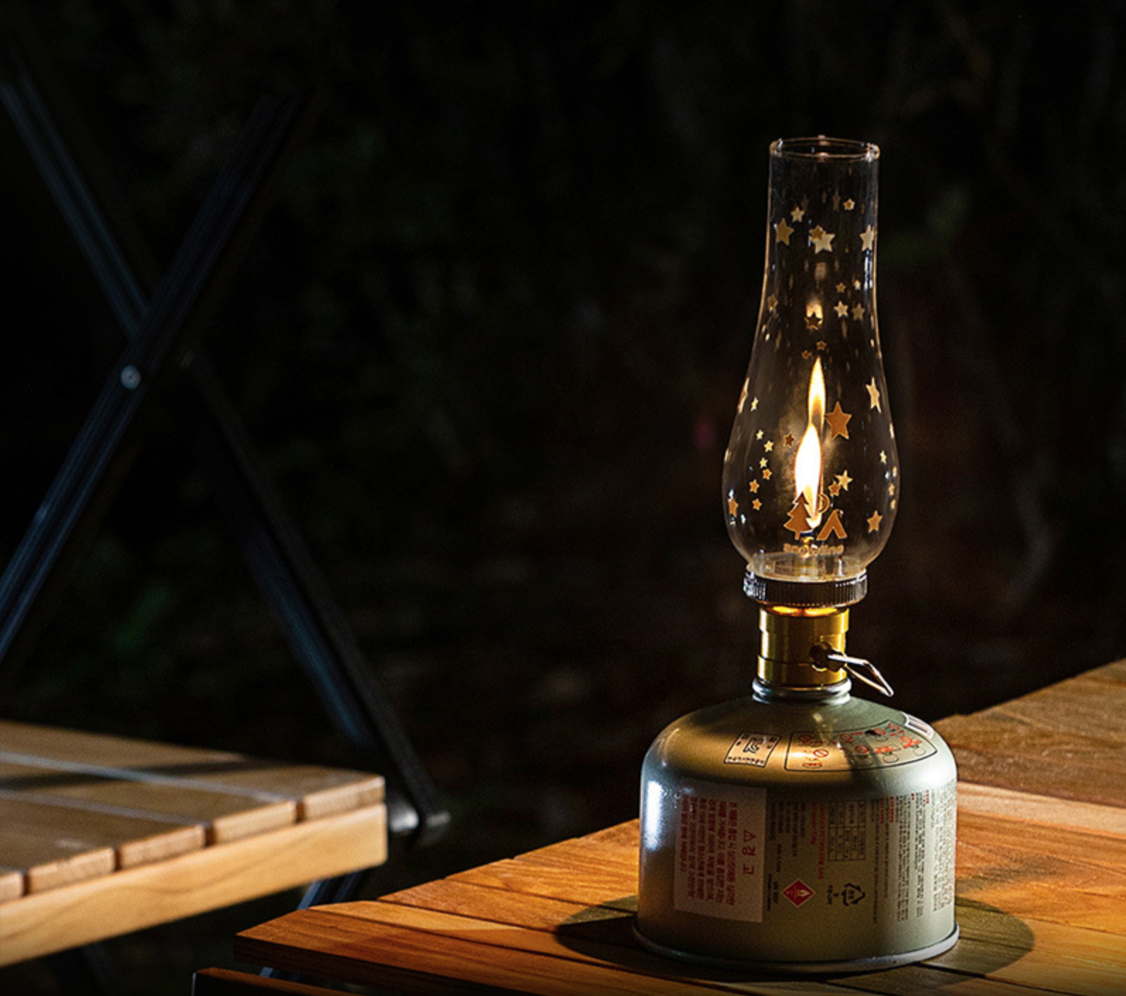 ตะแตียงแก๊สแบบเปลวเทียน โป๊ะทำจากแก้วคุณภาพสูง เทคนิคการผลิตแบบพิเศษทนต่อการเปลี่ยนแปลงของสภาพอุณหภูมิ มาพร้อมกล่องที่ทำจากไม้วอลนัทให้ความรู้สึกคลาสสิก