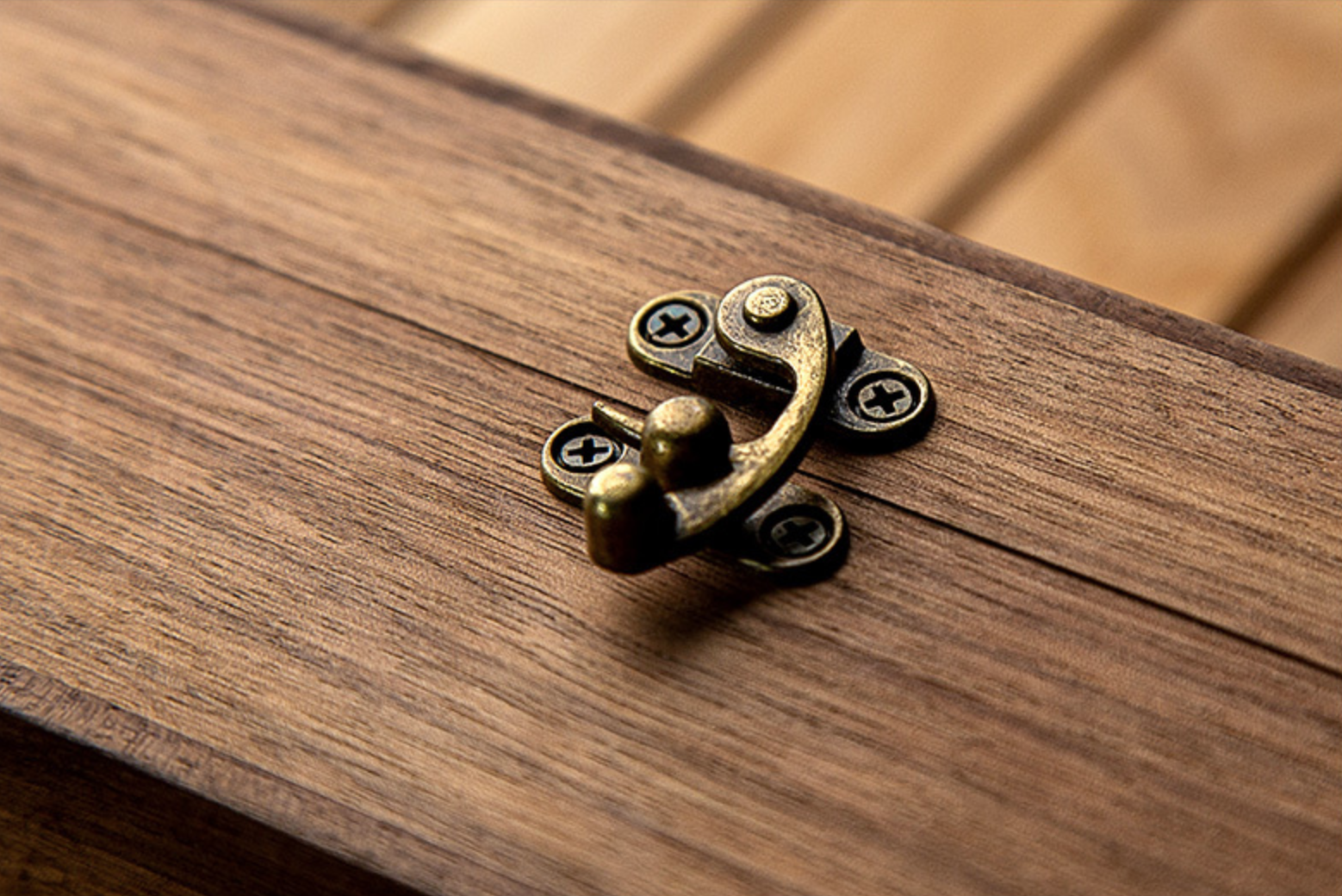 วัสดุ : ไม้วอลนัท, แก้ว,ทองเหลือง, เหล็ก