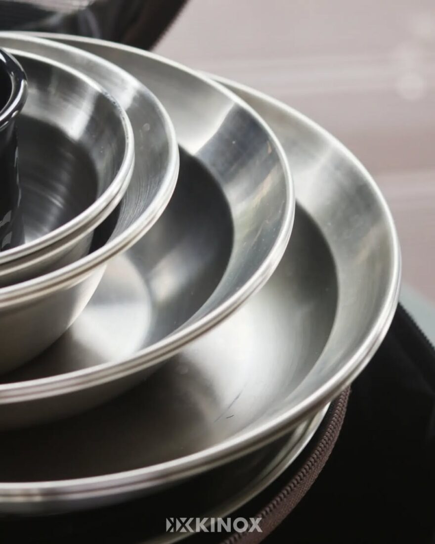 ชุดภาชนะสำหรับรับประทานอาหารจาก KINOX สำหรับ 1-2 ท่าน เป็นเซ็ตเริ่มต้นที่ครบครัน ประกอบด้วยภาชนะ 6 ขนาดที่แตกต่างกัน รวมทั้งหมด 8 ชิ้น ผลิตจากสแตนเลสสตีลเกรด 304J1 คุณภาพสูงจากเกาหลีใต้ มีความแข็งแรงทนทานสูงและปลอดภัยต่ออาหาร ภาชนะทั้งหมดถูกออกแบบมาให้ซ้อนเก็บกันได้อย่างสมบูรณ์แบบ ช่วยประหยัดพื้นที่ในการจัดเก็บ เหมาะสำหรับนักเดินทางคนเดียวหรือคู่รัก