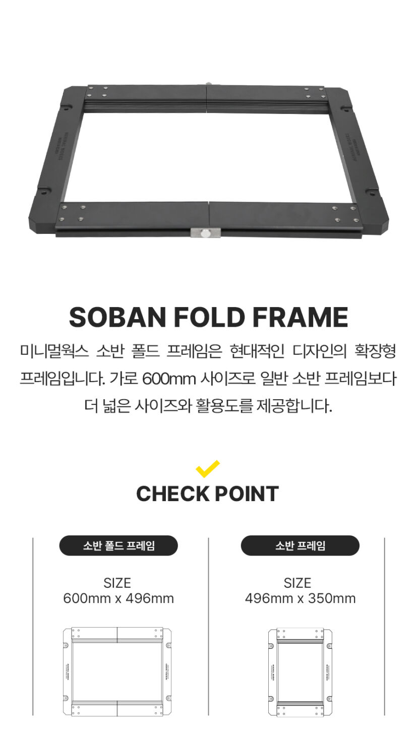รายละเอียด : Minimal Works Soban Fold Frame เป็นเฟรมที่ขยายได้พร้อมการออกแบบที่ทันสมัย ด้วยขนาด 600 มม. จึงใหญ่กว่าโครงทั่วไป ให้ขนาดและการใช้งานที่กว้างขึ้น