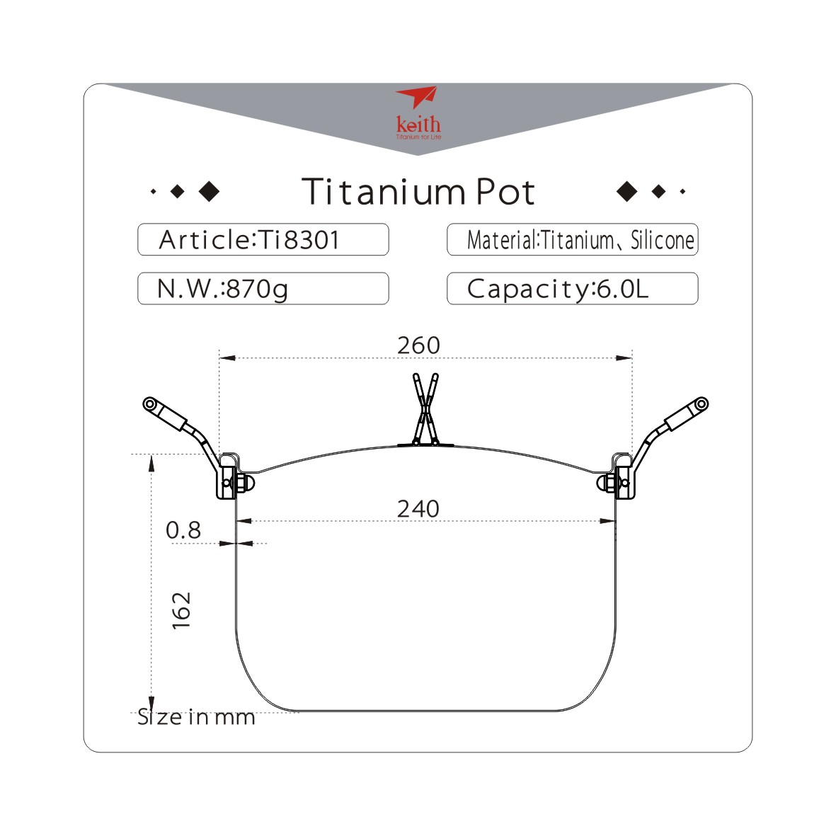 ชื่อสินค้า : Titanium pot Keith Ti8301