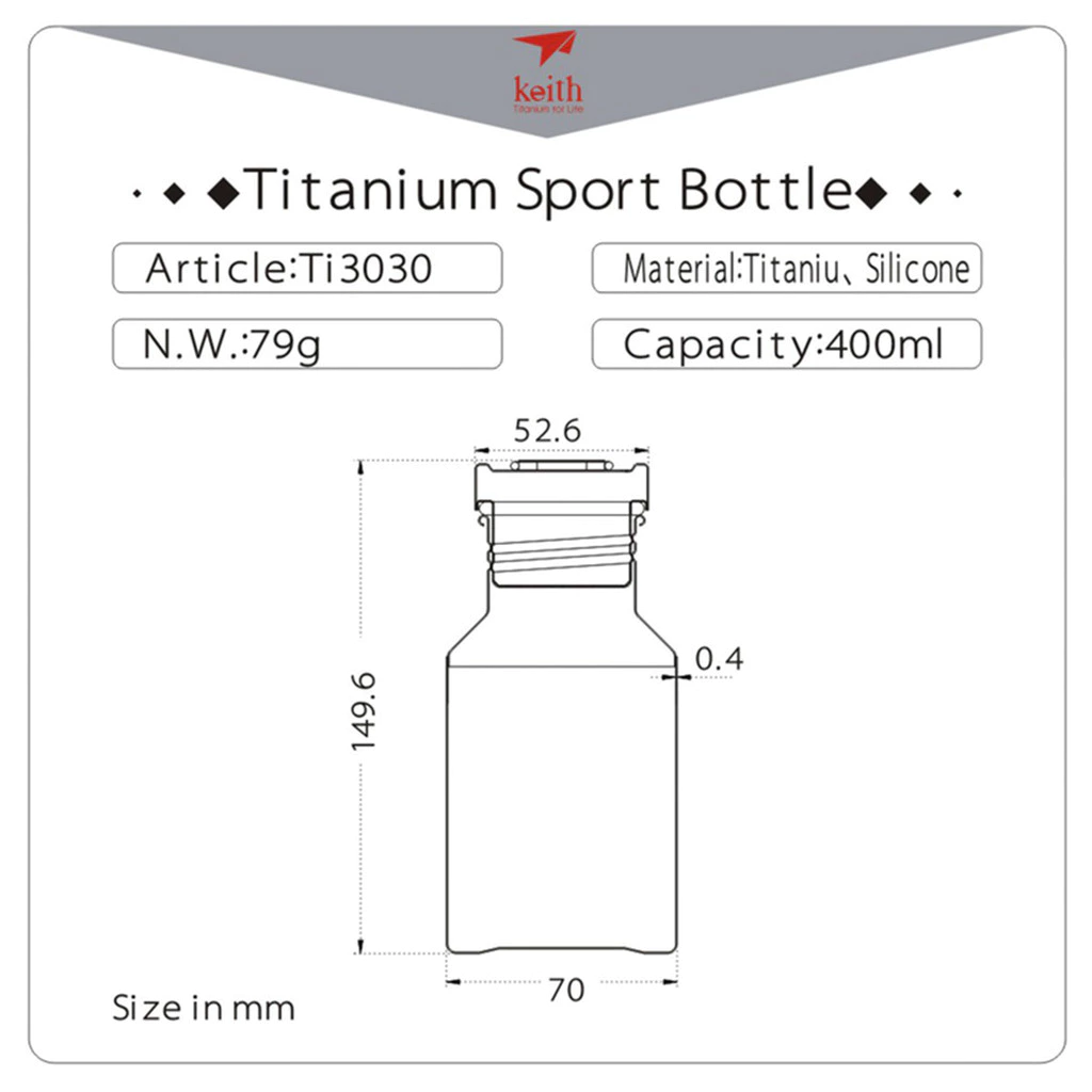 รายละเอียด : ขวดน้ำไทเทเนียมขนาด 400 มล. รุ่น TI3030 ออกแบบมาเพื่อการเดินทางที่คล่องตัว ด้วยน้ำหนักเบาเพียง 79 กรัม พกพาสะดวก ใส่ในกระเป๋าเป้หรือช่องข้างได้อย่างง่ายดาย ผลิตจากไทเทเนียมแท้ แข็งแรงทนทาน ไม่เป็นสนิม ให้คุณมั่นใจในความปลอดภัยและอายุการใช้งานยาวนาน ดีไซน์ไร้รอยต่อช่วยให้ทำความสะอาดง่ายและถูกสุขอนามัย มาพร้อมฝาปิดซีลซิลิโคนเกรดอาหาร ป้องกันการรั่วซึมอย่างมีประสิทธิภาพ ตอบโจทย์นักเดินทาง นักกีฬา และสายแคมป์ปิ้งที่ต้องการขวดน้ำที่เบา แข็งแกร่ง และใช้งานสะดวกในทุกสถานการณ์