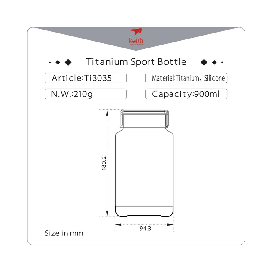 ชื่อสินค้า : Titanium sport bottle (with bottle set) Keith Ti3035 900ml