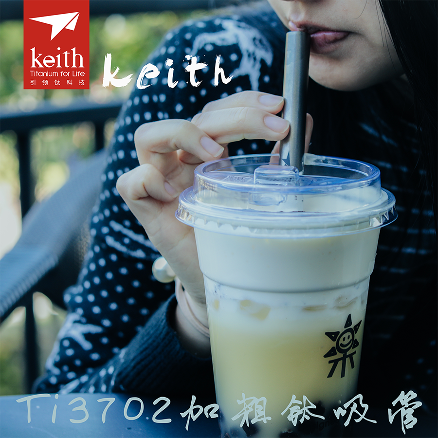 หลอดไทเทเนียมของ Keith รุ่น Ti3702 นั้นเป็นหลอดตรงขนาดใหญ่กว่าหลอดปกติ สามารถใช้ดูดชานมไข่มุกได้ ในขณะที่มีน้ำหนักเบาเพียง 19 กรัม แข็งแรงเพราะผลิตจากไทเทเนียมบริสุทธิ์ ปลอดภัยต่อการใช้งาน เพราะไม่เป็นสนิม ทนความร้อนและความเย็นได้สูง อีกทั้ง ไม่รบกวนรสชาติของสิ่งที่คุณดื่มเหมือนพลาสติค ทำให้ ไม่ว่าจะเป็นกาแฟ ชา เบียร์ คุณก็จะได้รสชาติที่แท้จริง