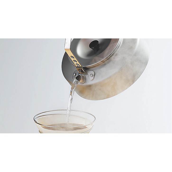 กาต้มน้ำ อลูมิเนียมจาก Uniflame น้ำหนักเบา พกพาสะดวก ขนาดความจุ 900มล. สามารถเก็บไว้ในหม้อ fan 5 DX ได้ หูจับมีการเจาะรูเพื่อลดการสะสมความร้อนในตอนใช้งาน